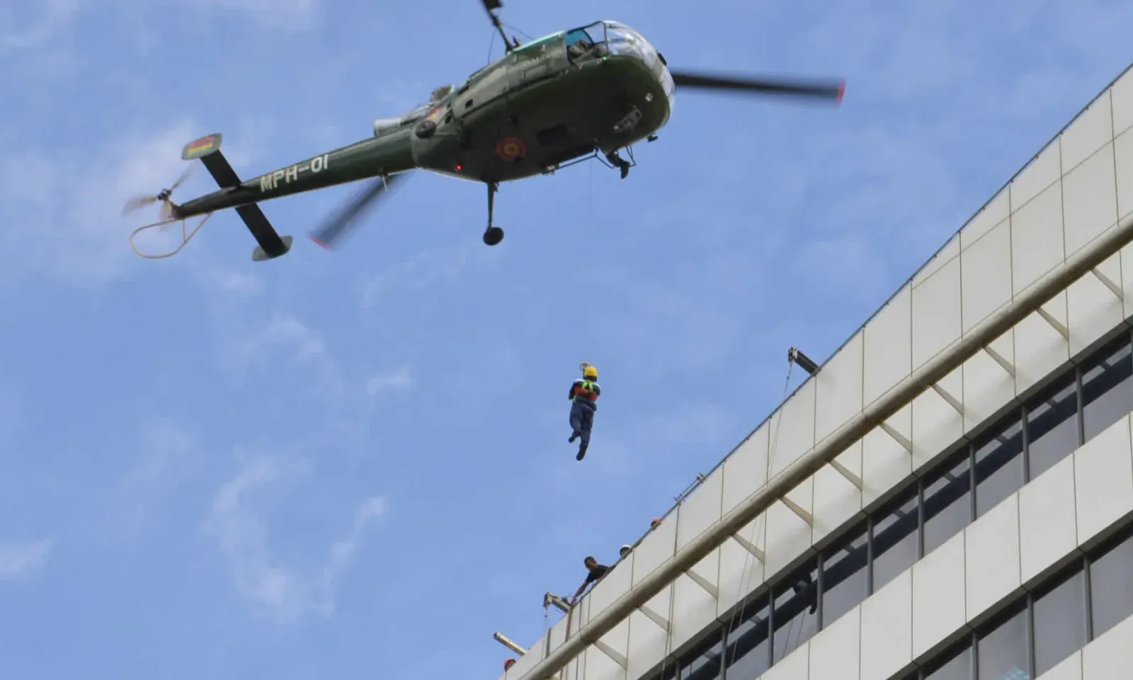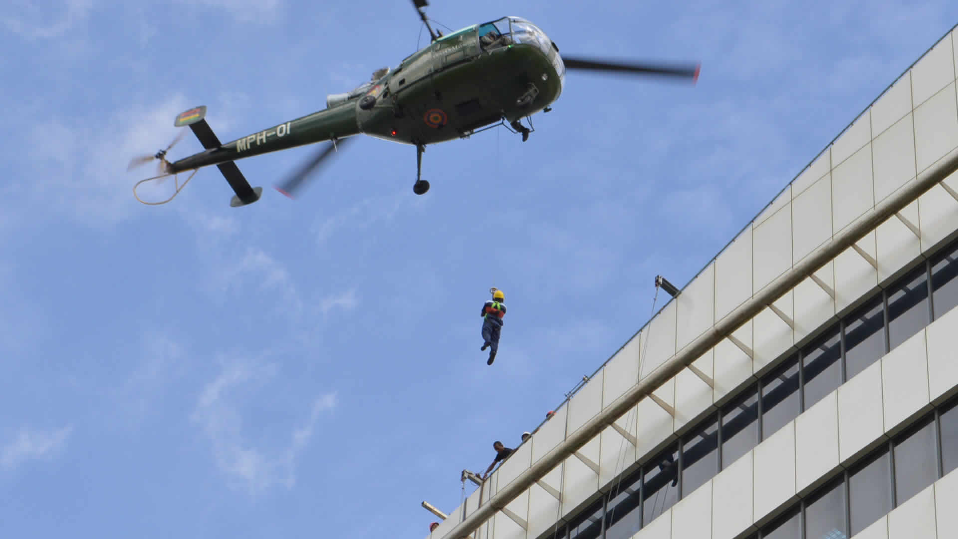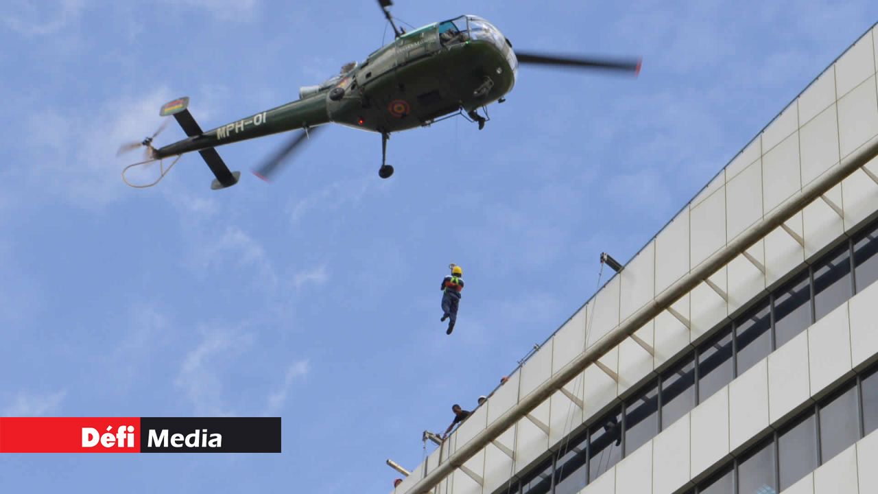 Les trois « cleaners », qui se sont retrouvés en difficulté alors qu’ils procédaient au nettoyage des vitres à l’extérieur d’un bâtiment au CyberTour d’Ebène, ont été secourus par des sapeurs-pompiers avec l’aide de l’hélicoptère de la police.