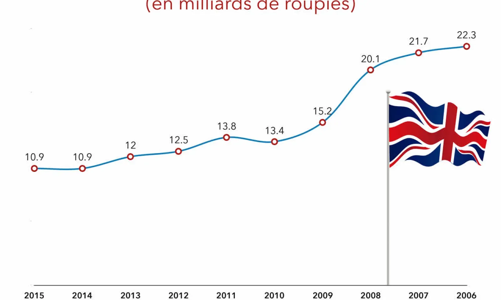 La Grande-Bretagne est le principal acheteur des produits Made in Mauritius. Elle a occupé cette position de 2006 à 2015, selon les archives de Statistics Mauritius (voir graphique). En 2015, ce marché a devancé les Émirats arabes unis, les États-Unis et la France.