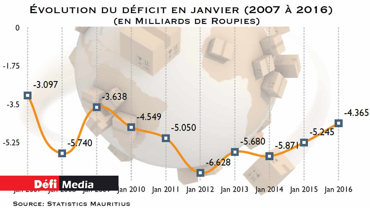 Le déficit commercial, en janvier, a atteint le montant provisoire de quelque Rs 4,4 milliards. C’est ce qu’indique Statistics Mauritius dans son bulletin mensuel sur le commerce, en date du mercredi 23 mars. Il ressort que le montant (exportations moins importations) est le moins élévé pour le mois de janvier de ces sept dernières années.