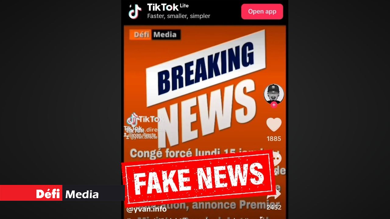 Une vidéo avec le logo du Défi Media Group circule sur TikTok ce dimanche, annonçant que les écoles seront fermées ce lundi et que les fonctionnaires ne devront pas se rendre au travail en raison de la présence du cyclone Belal dans nos parages. Le/les auteur/s de cette Fake News a/ont utilisé des images d'archives montrant un de nos journalistes dans le studio annonçant que les écoles seront fermées. Il s’agit d’une Fake News. Comme mentionné sur notre site Web et notre page Facebook, ce n’est que tôt demain matin, soit vers 04 h 00, qu’une décision sera prise par rapport à la reprise des classes.