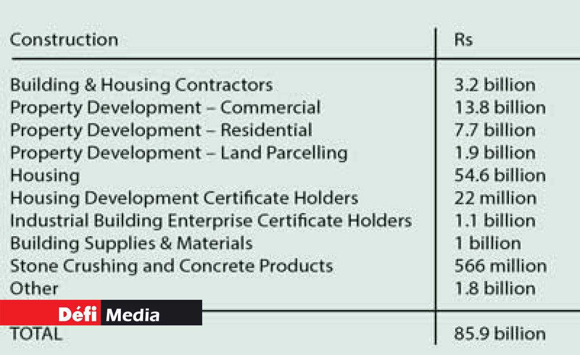 According to the latest report from the Bank of Mauritius on the level of credit allocated to the private sector, it appears that the construction industry is indebted to the tune of nearly Rs 86 billion as at 29 February 2016. This represents about 25% of total credit allocated by financial institutions to the whole private sector.