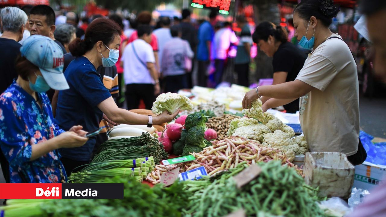 Une femme achetant des légumes sur un marché à Shenyang, dans la province de Liaoning, au nord-est de la Chine, le 9 août 2023. (Photo par AFP)