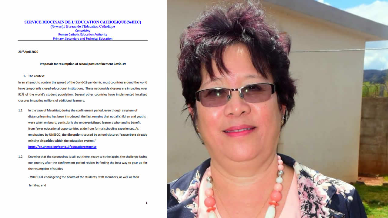 Dans un communiqué émis cet après-midi du vendredi 24 avril, le Service diocésain de l’éducation catholique (SeDEC) est d’avis que la rentrée des classes doit être renvoyée jusqu’à ce que les risques de contamination diminuent. La Dr Gilberte Chung Kim Chung, directrice du SeDEC, s'exprimant au nom de l’éducation catholique, soutient que cela pourrait se faire autour de mi-juin début juillet. Mais la date reste à être déterminée par le gouvernement.