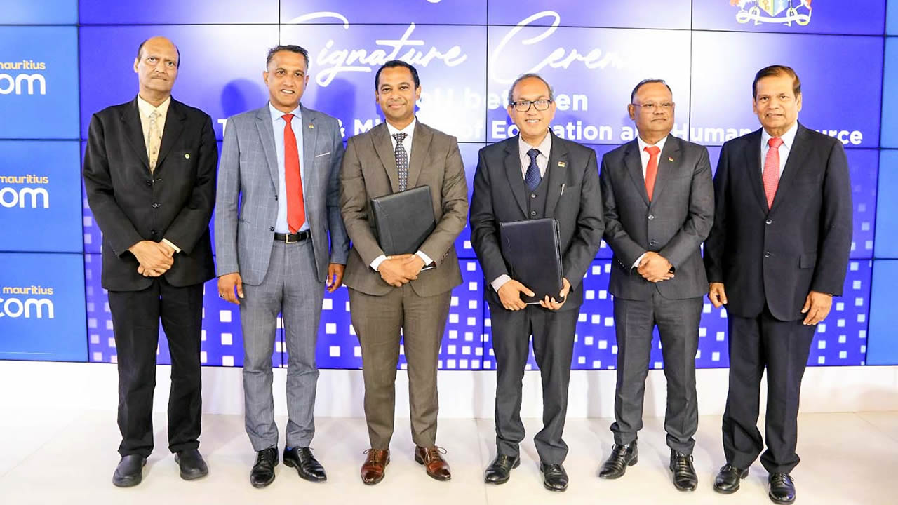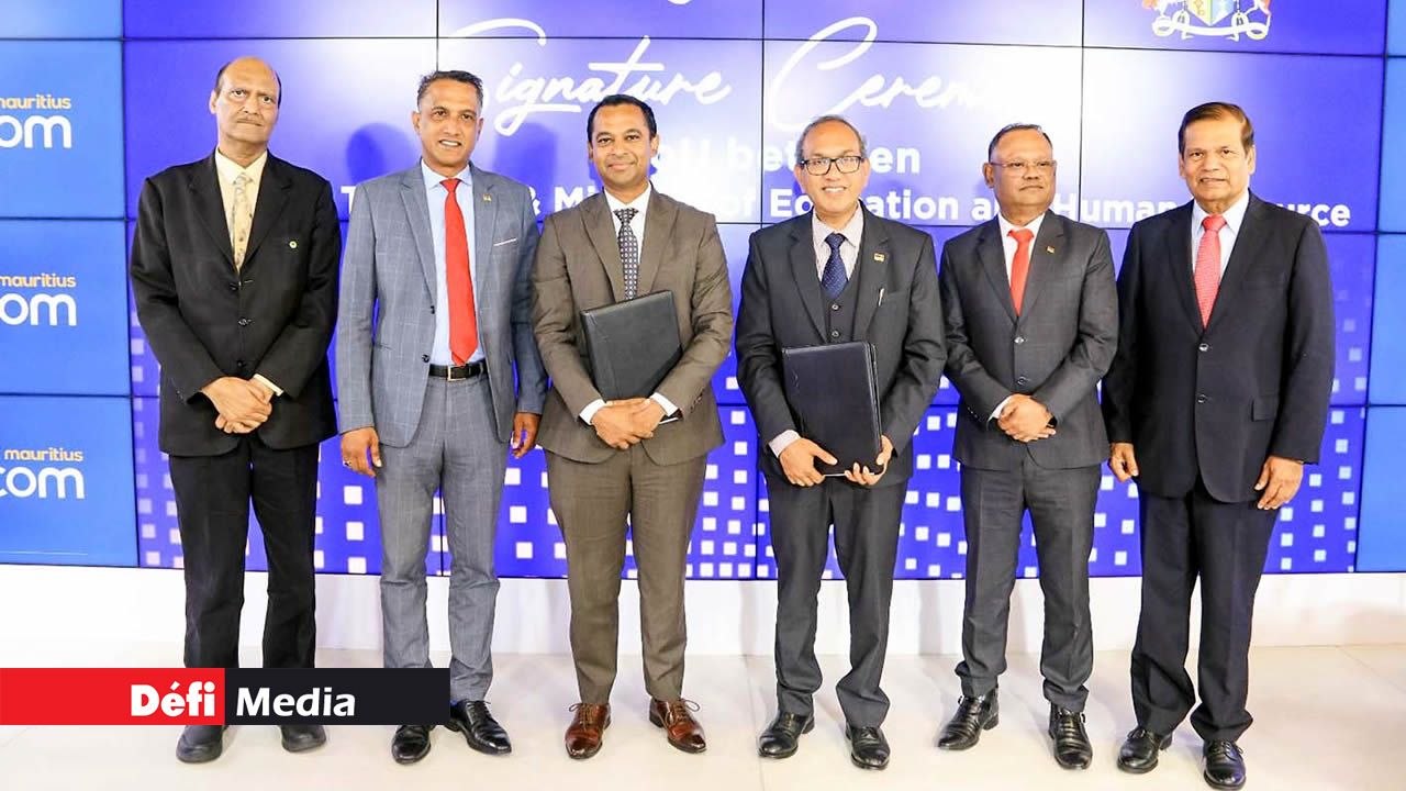 Un protocole d’accord a été signé lundi entre le Secrétaire permanent du ministère de l’Éducation, Doonunjoy Dassaye, et le Directeur général de Mauritius Telecom, Veemal Gungadin, pour la mise en œuvre du projet pilote de la plateforme éducative mytGPT.