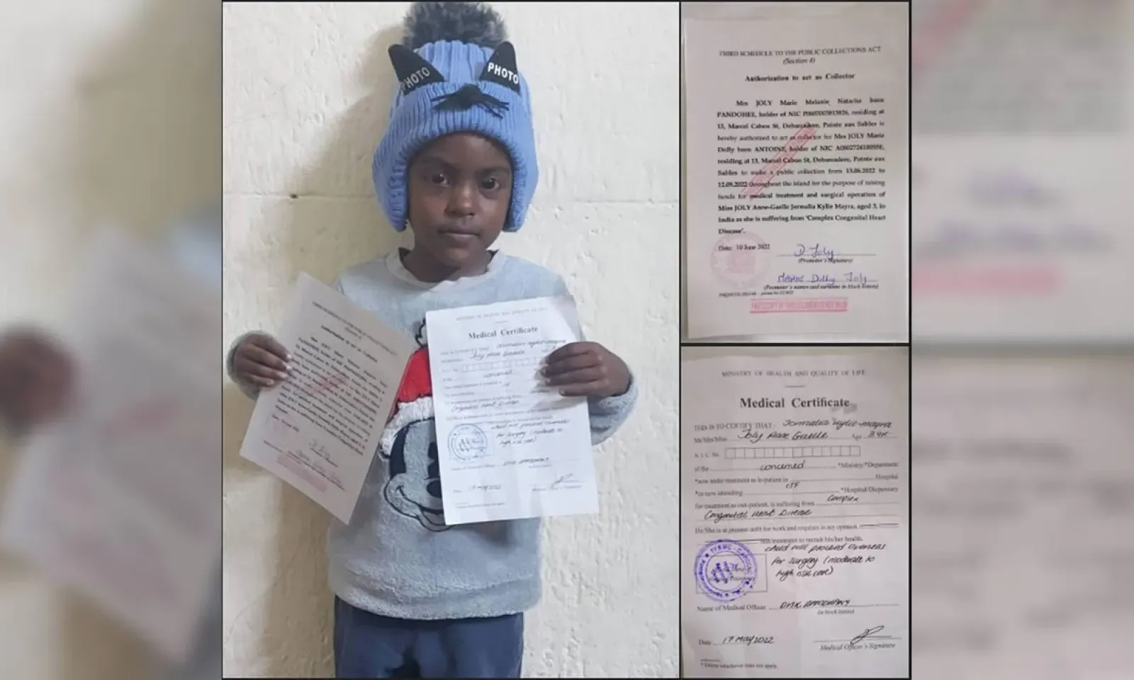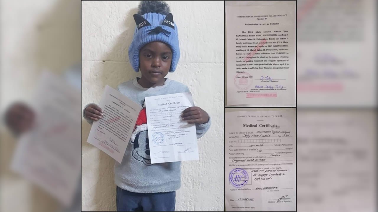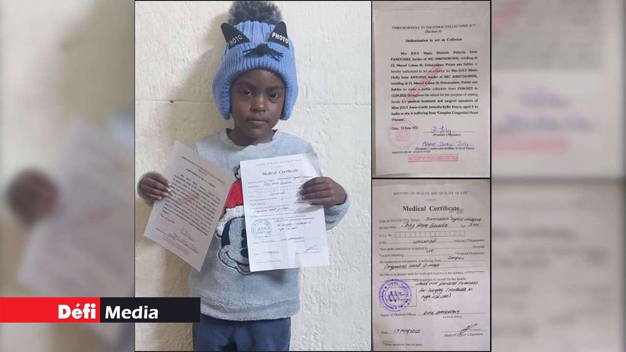 Mélanie, 21 ans, est la maman d’Anne-Gaëlle Joly, 3 ans. La petite souffre d’une malformation du cœur et doit se rendre en Inde d’ici le 30 juin pour se faire soigner. La famille doit trouver Rs 1 million pour financer le voyage, les soins et l’hébergement. La somme comprend aussi les frais du billet d’avion du médecin qui accompagnera l’enfant.