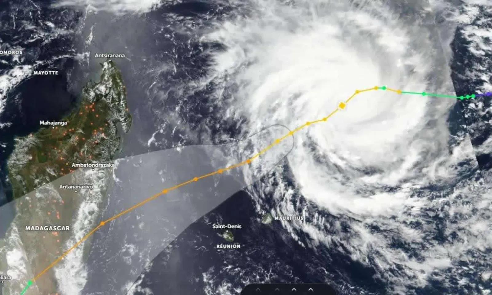 « À 19h, le cyclone tropical Emnati était centré à environ 360 km au nord de Cap-Malheureux en latitude 16.6 degrés sud et longitude 57.6 degrés est. Le cyclone tropical Emnati continue à se déplacer vers le sud-ouest à une vitesse d'environ 17 km/h. Sur cette trajectoire, Emnati s’approche de l’île et passera à son point le plus rapproche à environ 275 km au nord-nord-ouest de Grand-Baie demain matin », souligne la station météo de Vacoas.