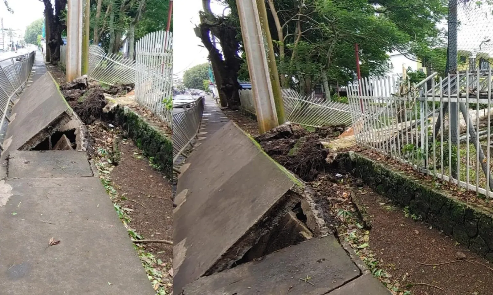 À proximité de la station-service d’Engen, le trottoir a été endommagé. Un arbre est tombé sur des barreaux.