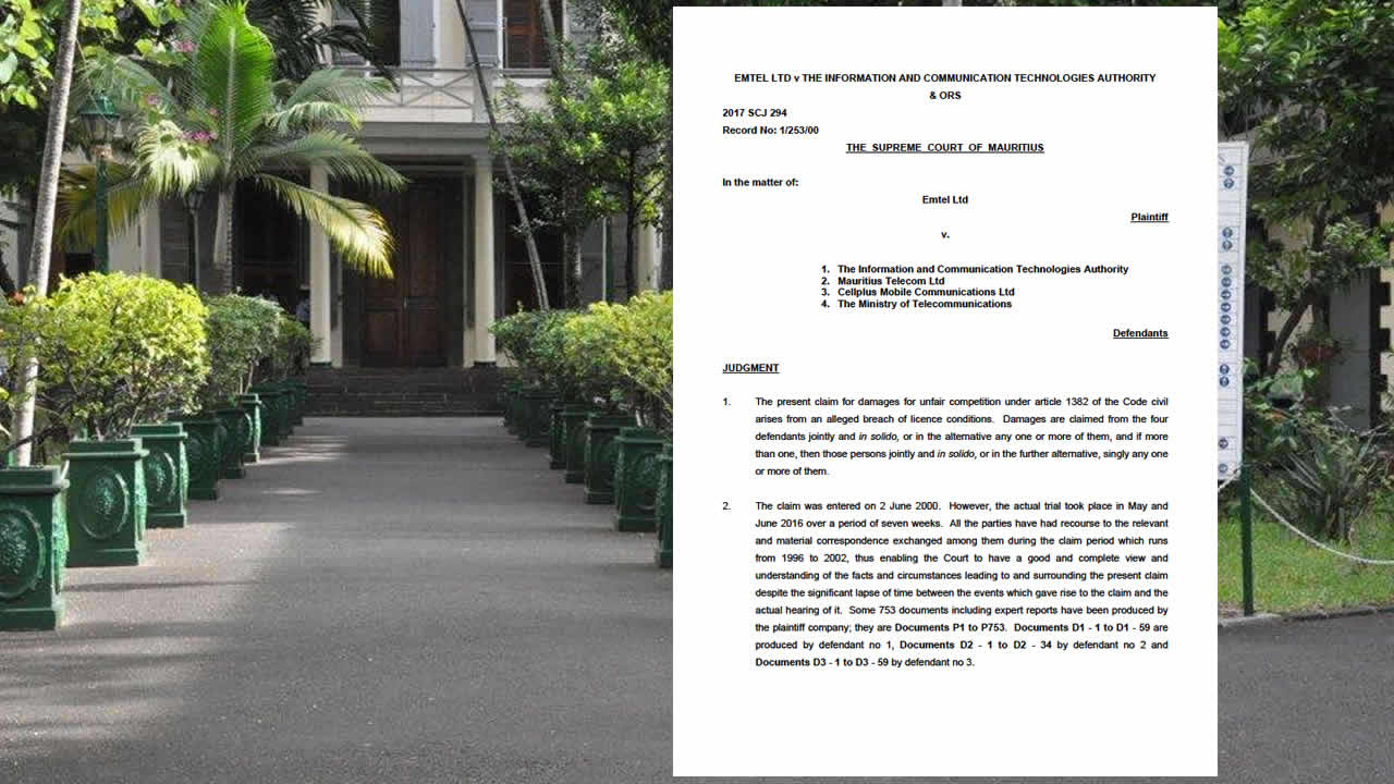 Emtel a obtenu gain de cause en Cour suprême ce mercredi 9 août. Celle-ci a ordonné à l’Information and Communications Technology Authority (Icta), Mauritius Telecom et Cellplus Mobile Communications Ltd de payer conjointement des dommages de Rs 554 139 000 à la compagnie de téléphonie. La plainte contre le quatrième défendeur, le ministère des Télécommunications, a été rayée.