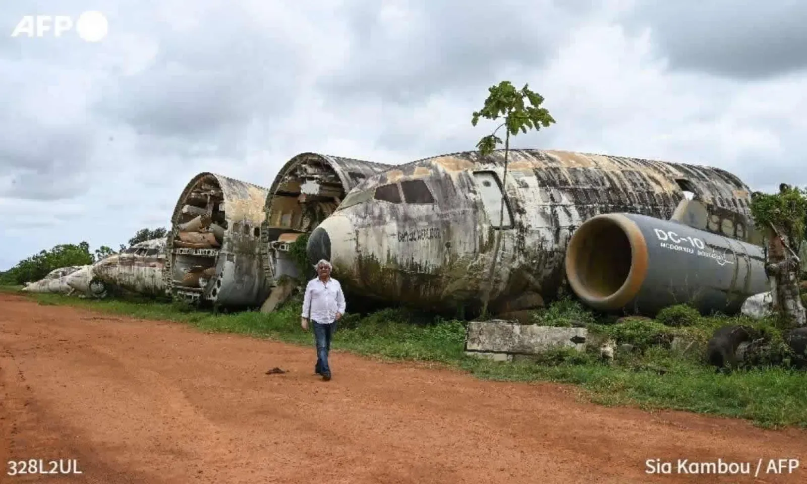 "Ca c'est un DC-10, à côté vous avez un Fokker 28, là-bas des Boeing 737..." Près d'Abidjan, entre forêt verdoyante et lagune, Aziz Alibhai présente son étonnante collection d'épaves d'avions qu'il rêve un jour de transformer en attraction touristique atypique.