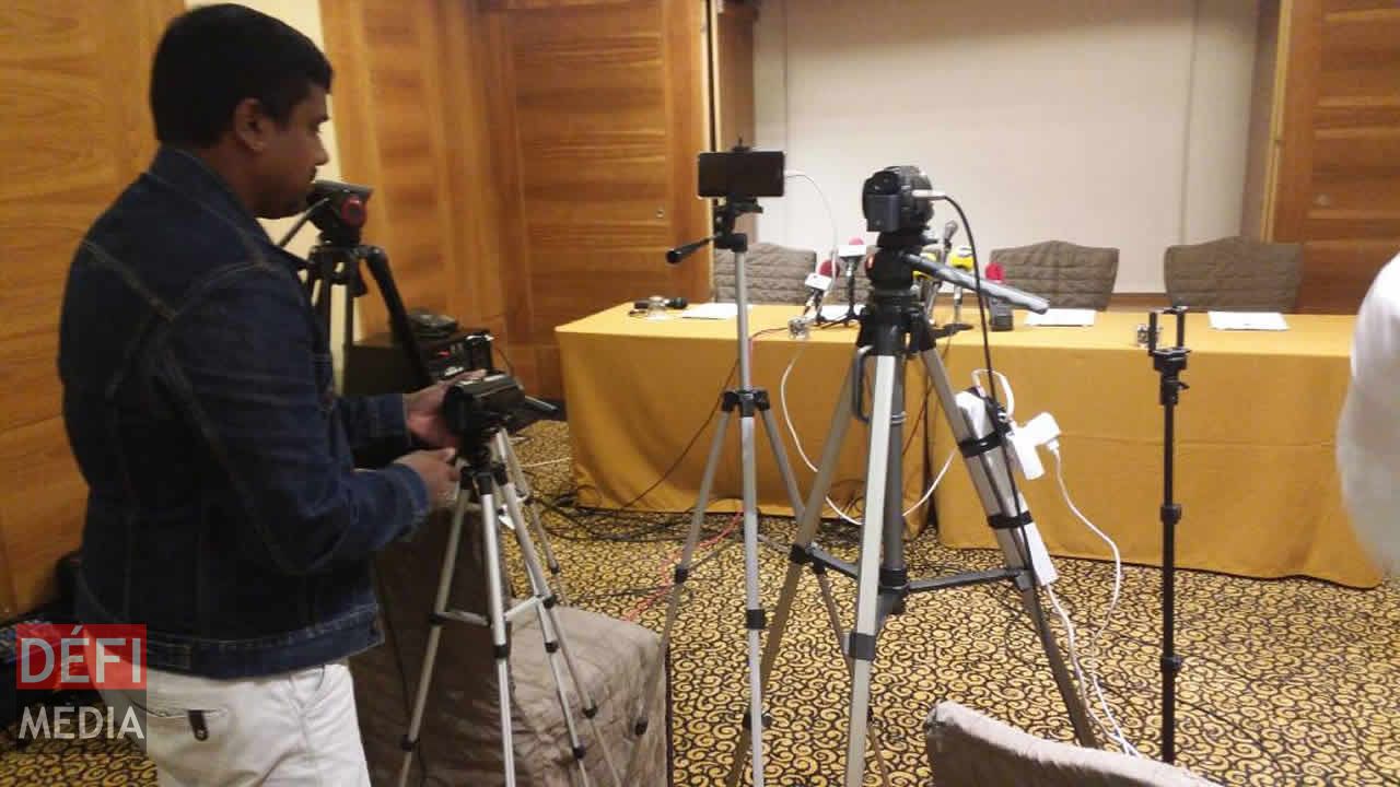 Quelques images des préparatifs, peu avant le début de la conférence de presse de Nandanee Soornack.