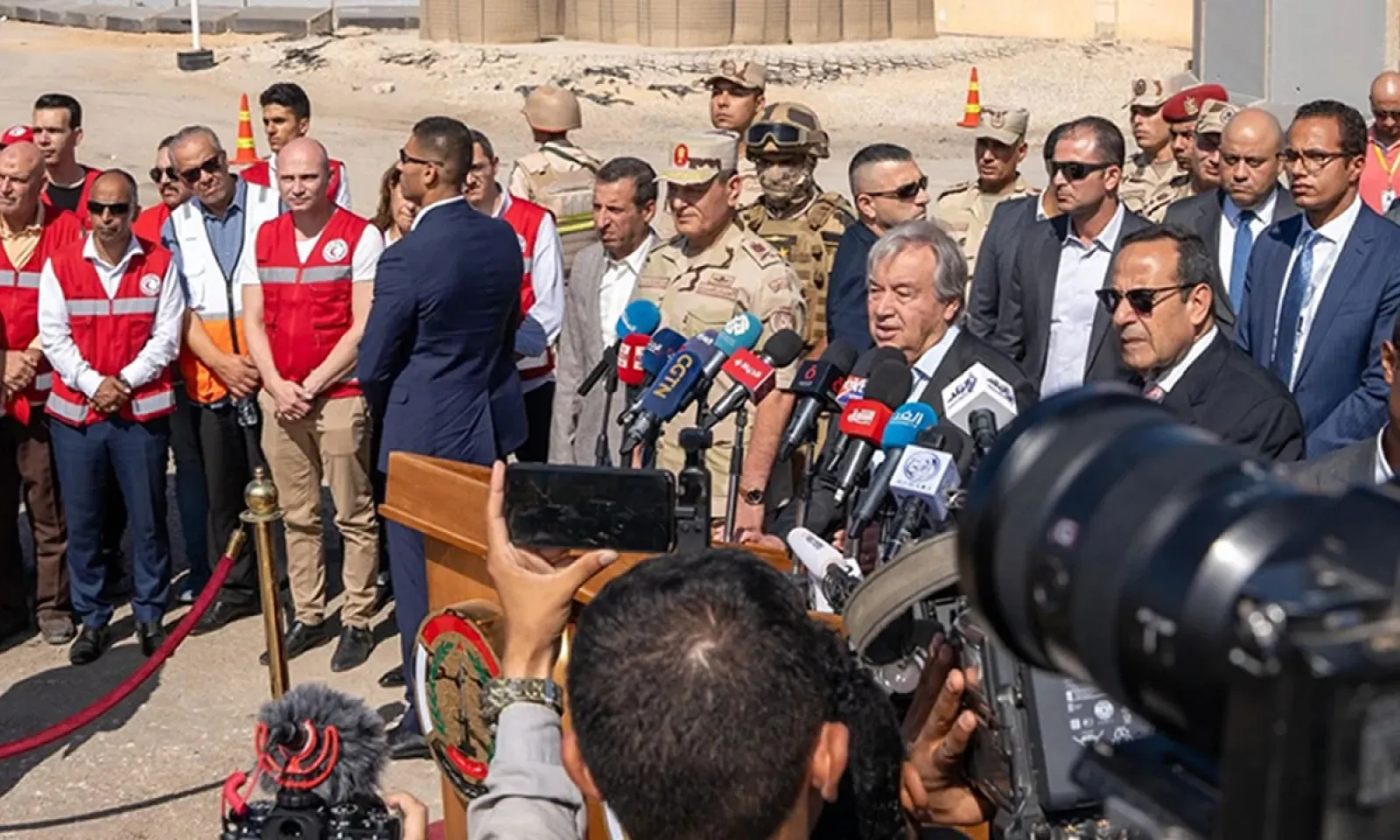 Le secrétaire général de l'ONU, Antonio Guterres, a appelé vendredi depuis le point de passage de Rafah en Egypte, l'unique ouverture sur Gaza qui ne soit pas aux mains d'Israël, au "passage rapide" de l'aide humanitaire vers le territoire palestinien assiégé.
