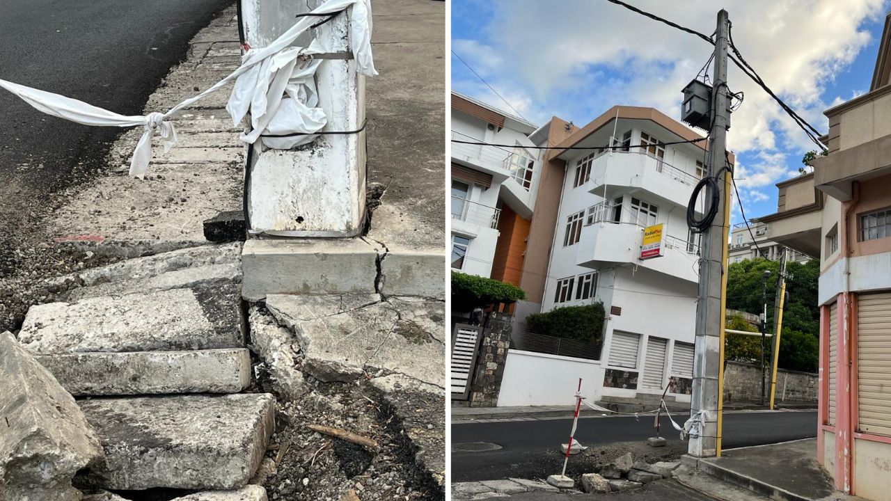 Une partie de la rue Labourdonnais à Port-Louis, à proximité des locaux de Radio Plus, a subi d’importants dégâts à la suite de la montée des eaux lors du passage du cyclone Belal. En conséquence, la base d’un poteau situé à l’intersection de la Cnr Antonio et Labourdonnais Street a été complètement envahie par les eaux.