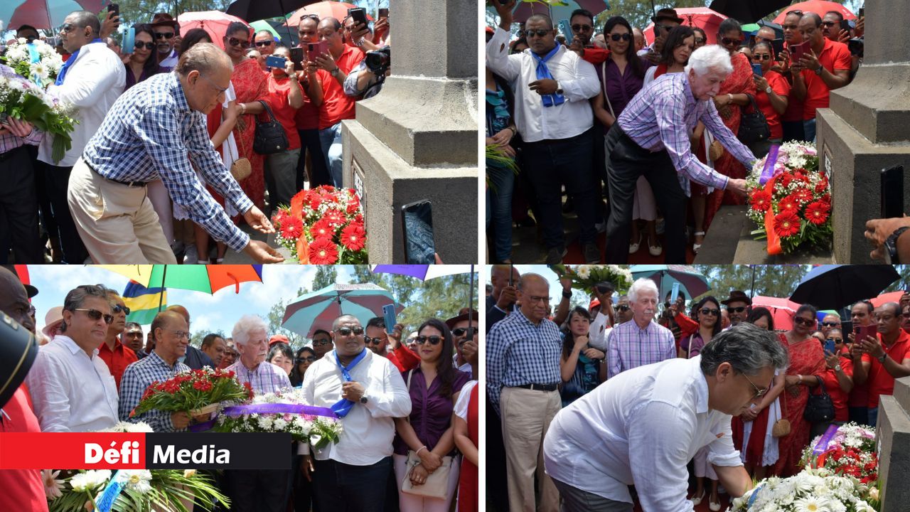 En ce 1er février marquant le 189e anniversaire de l'abolition de l'esclavage, une cérémonie de dépôt de gerbes a eu lieu à la mi-journée de ce jeudi à Pointe-Canon, Mahébourg. En présence du leader du Parti Travailliste, Navin Ramgoolam, de celui du Mouvement Militant Mauricien, Paul Bérenger, ainsi que le député du Parti mauricien social-démocrate, Richard Duval. D'autres membres de ces trois partis étaient également présents. Retour en images.