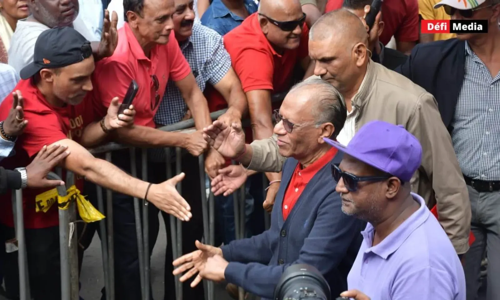 Le Premier ministre et leader du PTr, Navin Ramgoolam, ainsi que Paul Bérenger, Deputy Prime Minister et leader du MMM, sont arrivés à la Place Edward VII, où l'Alliance du Changement tient un meeting ce jeudi dans le cadre de la fête du Travail.