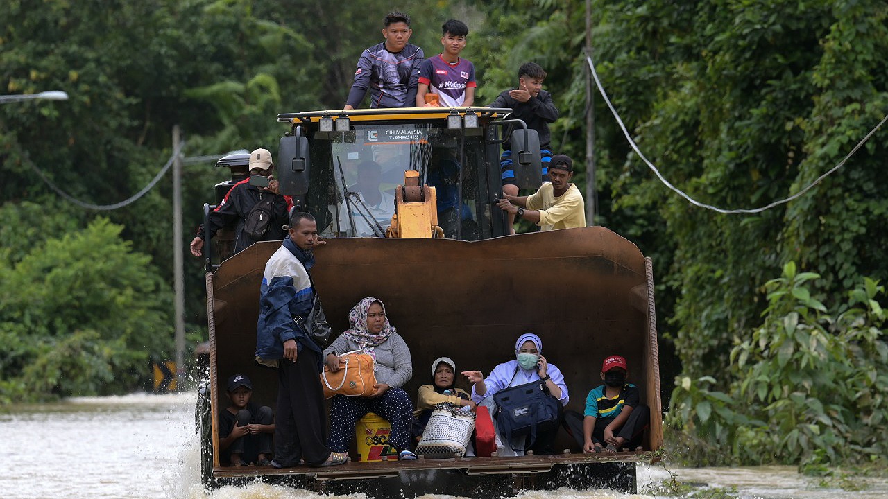 Mercredi, un groupe de villageois a été évacué avec une pelleteuse dans la localité de Kampung Sementeh (Pahang) qui s'est retrouvée isolée par les eaux, a constaté un journaliste de l'AFP sur place.