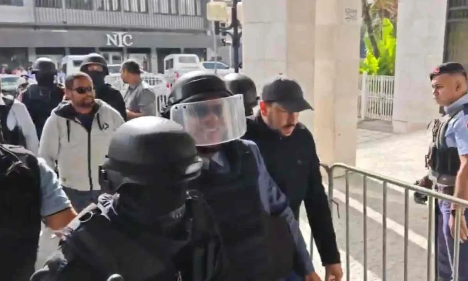 Casque vissé sur la tête, lunettes de soleil noires et visage souriant : le surintendant de police Ashik Jagai a fait son entrée ce jeudi à la New Court House de Port-Louis. Une nouvelle fois, il était entouré de commandos lourdement armés du Groupement d’intervention de la police mauricienne.