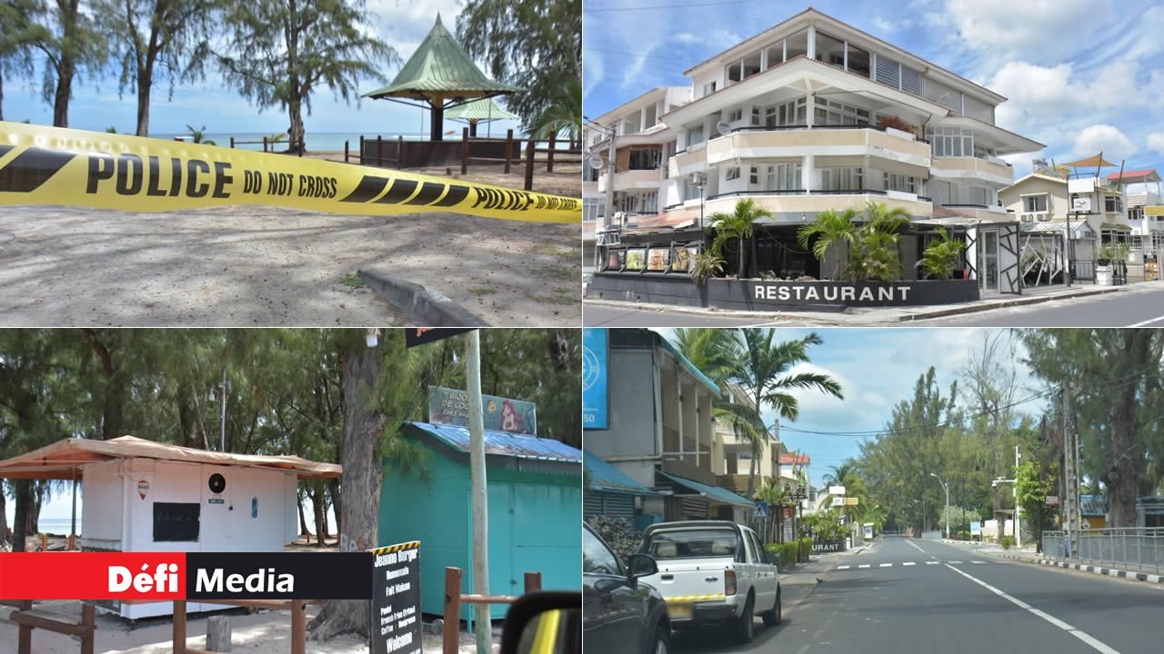 Calme plat dans les rues de Flic-en-Flac ce matin, alors que les commerces de proximité sont tous fermés et l'accès à la plage interdit.