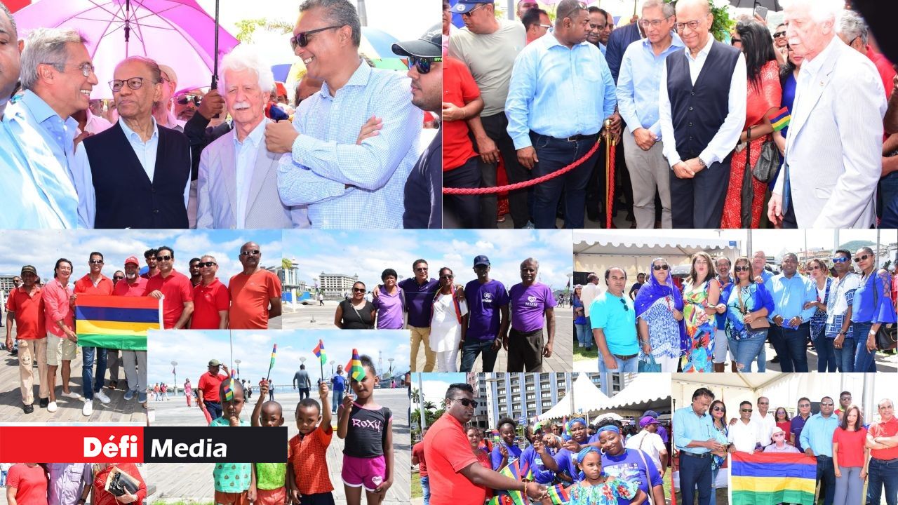 L'alliance PTr-MMM-PMSD s'est réunie au Port-Louis Waterfront devant la statue de sir Seewoosagur Ramgoolam pour la cérémonie de lever du drapeau, en ce mardi 12 mars, marquant les 56 ans de notre indépendance et les 32 ans de notre République. Les leaders respectifs des trois partis, Navin Ramgoolam, Paul Bérenger et Xavier-Luc Duval, étaient présents à cette occasion. Chacun a prononcé un discours mettant en avant l'importance des prochaines élections générales. Ils ont aussi participé à des dépôts de gerbes. Voici quelques images.