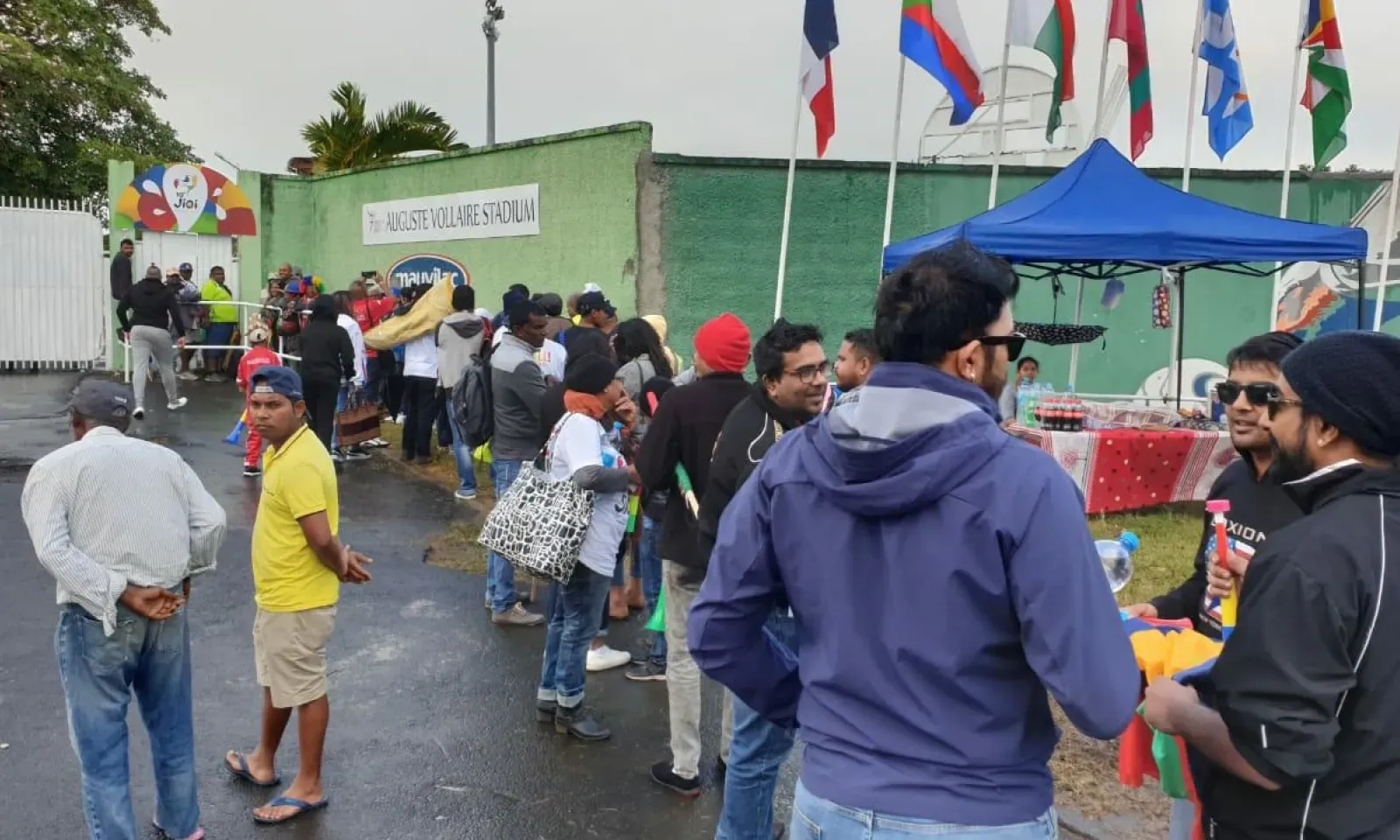 A trois heures du coup d'envoi de la finale de football des Jeux des îles de l'océan Indien (JIOI) entre Maurice et La Réunion, les premiers spectateurs sont déjà arrivés devant le stade Auguste Vollaire à Flacq où se disputera la rencontre. A 9 heures ce dimanche, ils attendaient l'ouverture des portes pour avoir accès à l'intérieur.