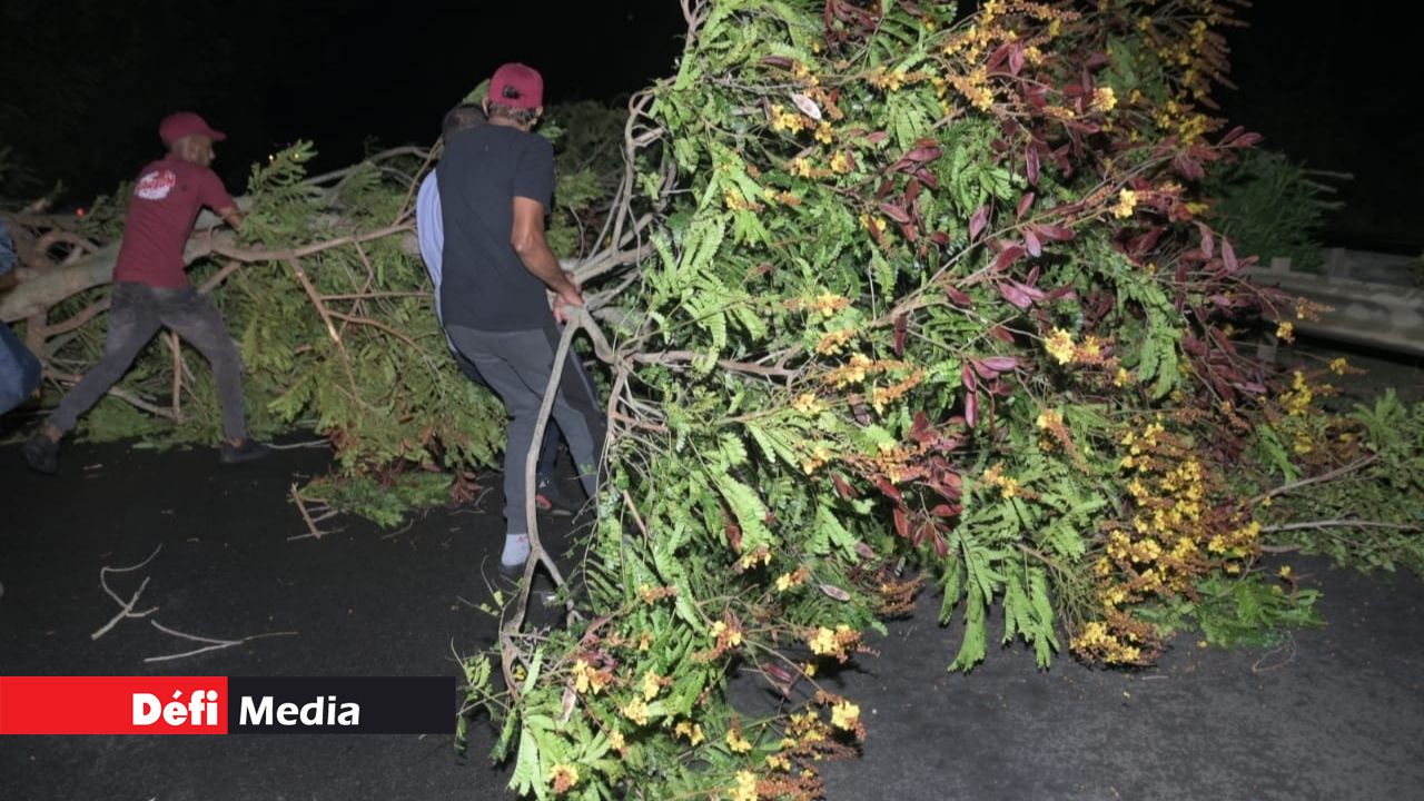 Ils n’ont pas résisté aux rafales de Batsirai. Des arbres ont plié sous les vents forts du cyclone tropical sur l’autoroute de Beau-Plan en direction de la capitale ce mardi soir, obstruant ainsi la route. Des sapeurs-pompiers des casernes de Piton sont sur place pour déblayer la route. Des conducteurs sont descendus de leurs véhicules pour leur prêter main forte.