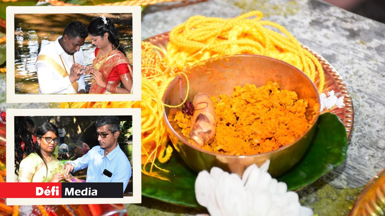 Lors de cette cérémonie, qui se déroule sur les berges de la rivière ou de la mer, les époux échangent l’ancien cordon sacré de couleur jaune attaché au cou de l’épouse contre un nouveau thali.