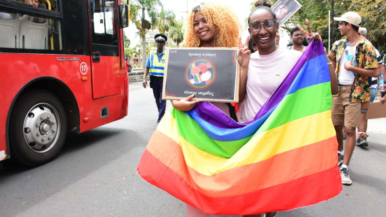 La Marche des fiertés, organisée par le Collectif Arc-en-Ciel, se tient ce samedi après-midi à Rose-Hill. Elle a débuté devant la mairie des villes sœurs à 13 h. Les participants défilent dans les rues, sous forte escorte policière, pour se rendre à la Place Margéot. Voici quelques images.
