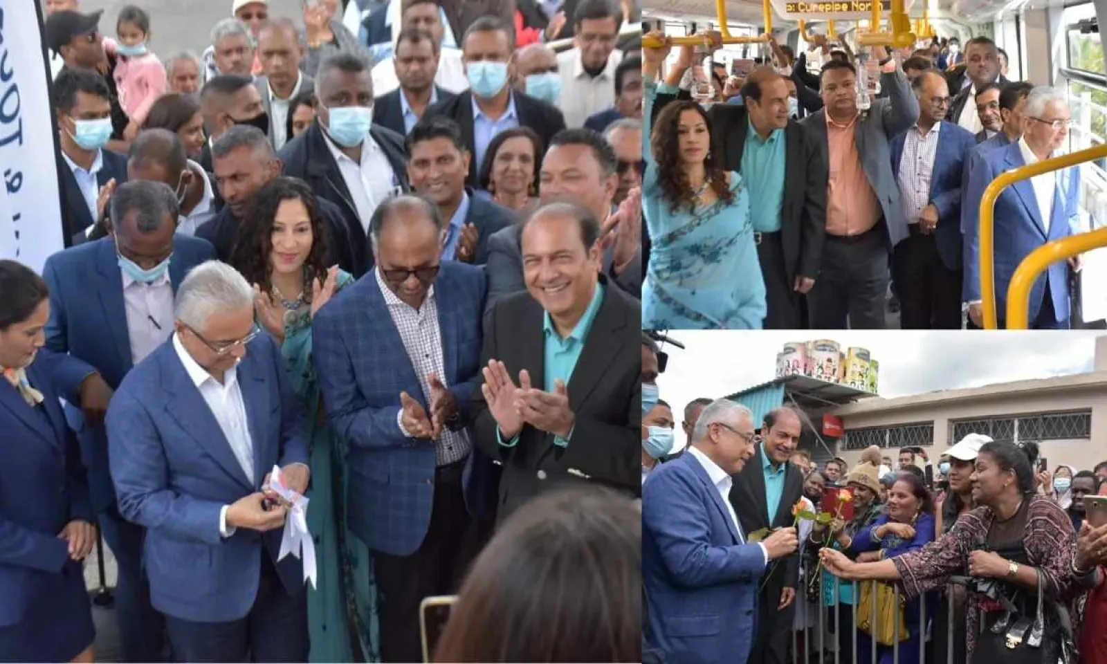 Le Premier ministre, Pravind Jugnauth, entouré du Deputy Prime minister, Steven Obeegadoo, du ministre du Transport, Alan Ganoo, du deputé Kenny Dhunnoo, de l’ambassadrice de l’Inde à Maurice, Nandini K Singh la, et du PPS Gilbert Bablee a procédé à l’inauguration de cette ligne ce dimanche après-midi.