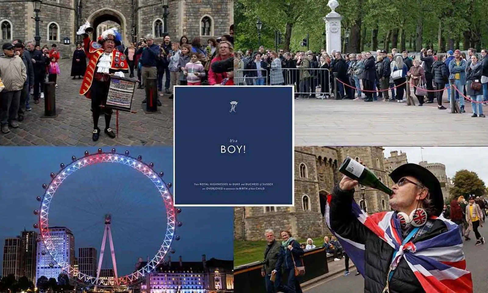 Retour en images sur l'ambiance qui a régné à Londres après l'annonce de la naissance du fils du prince Harry et son épouse Meghan