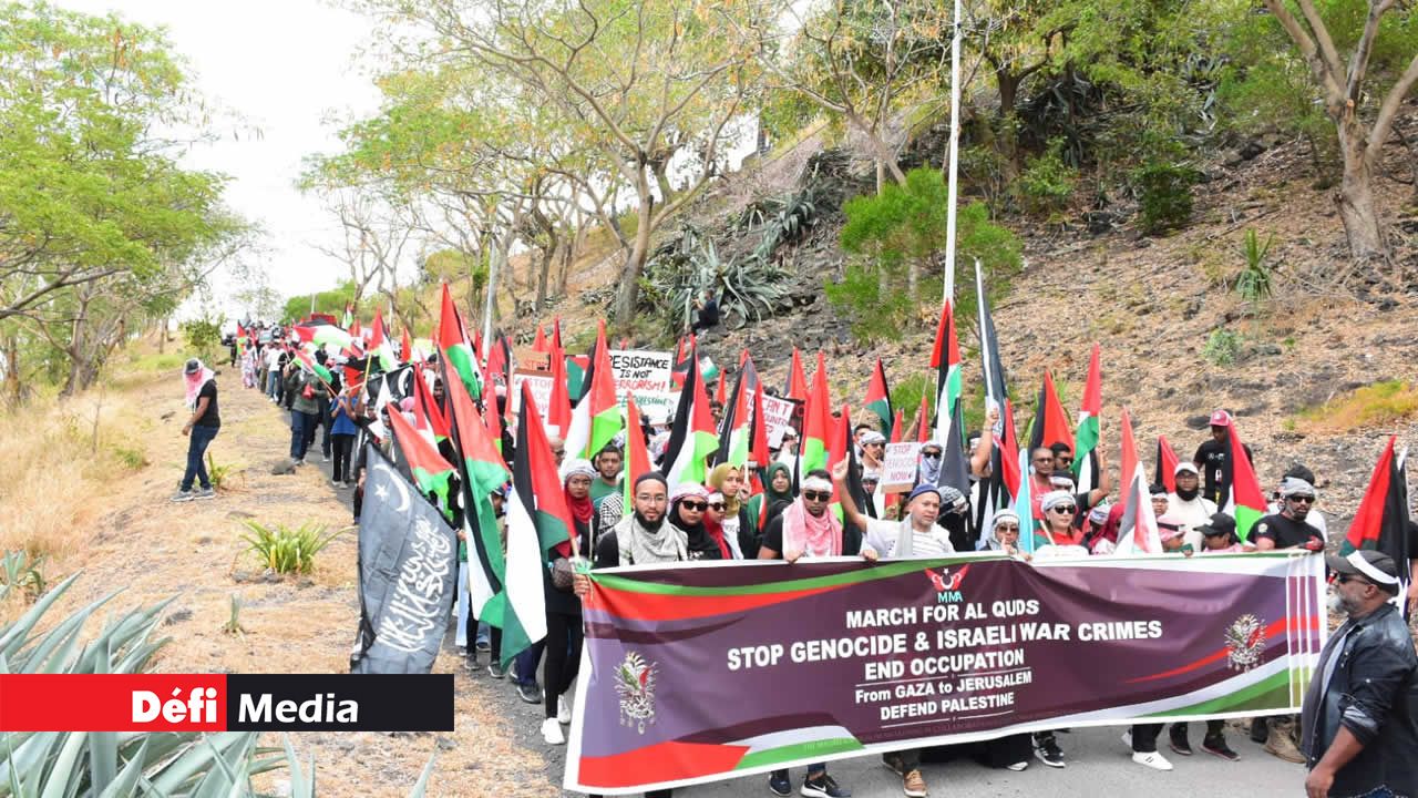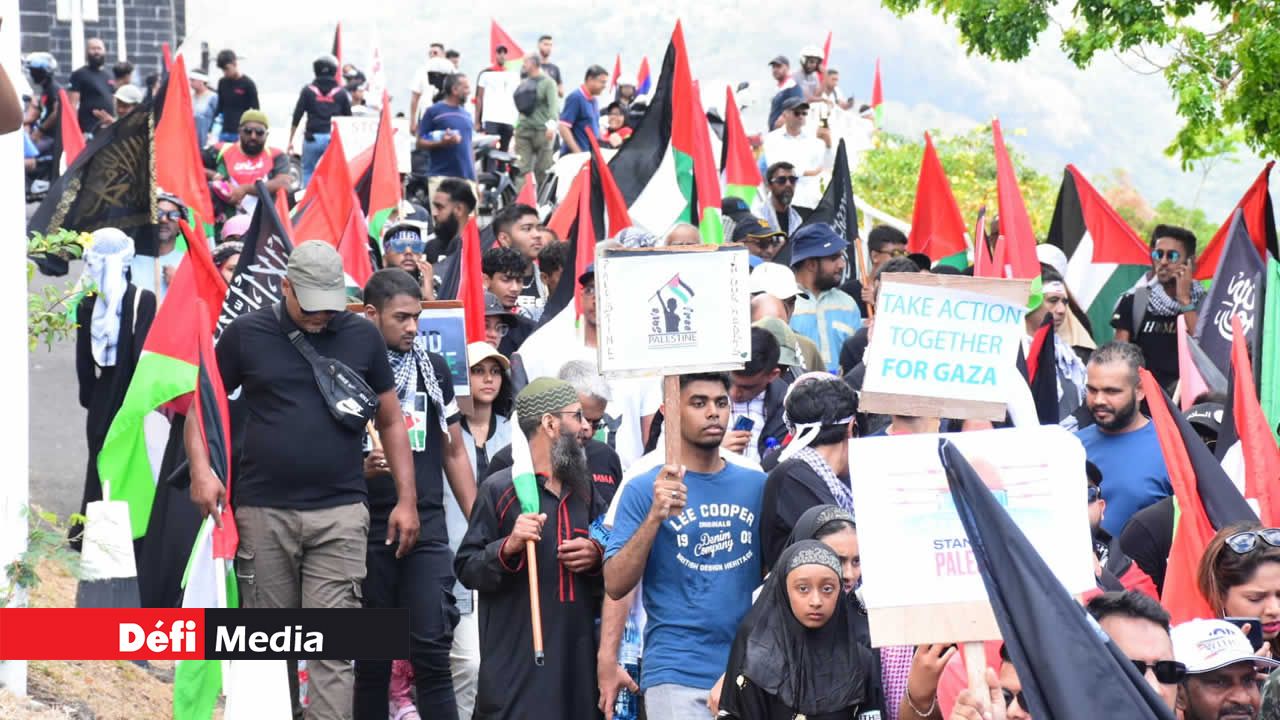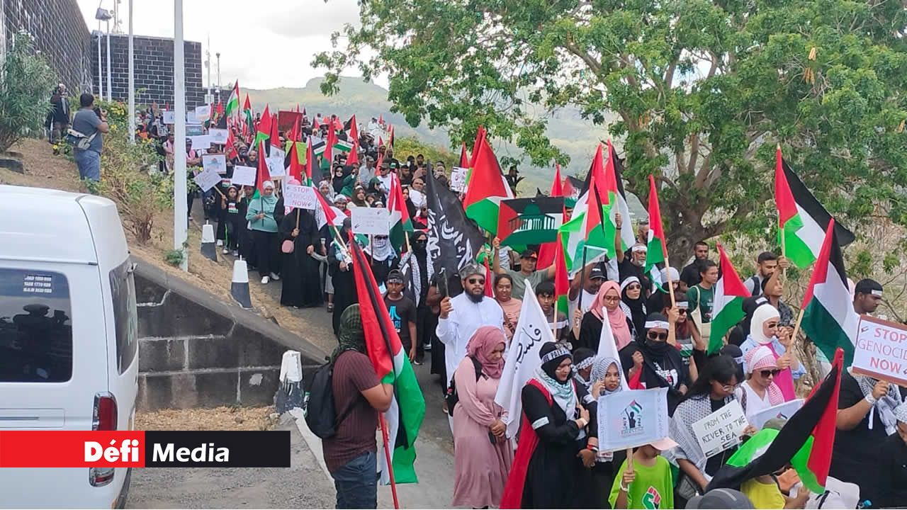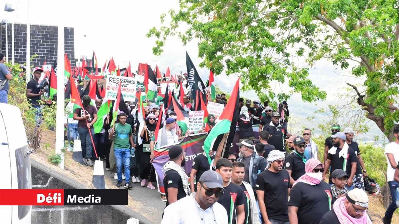 Une seconde marche visant à dénoncer les «atrocités» commises contre le peuple palestinien à la suite de la guerre entre Israël et le Hamas a eu lieu à Port-Louis ce dimanche matin, suivant celle organisée à Plaine-Verte le vendredi précédent. Hommes, femmes et enfants, arborant des drapeaux palestiniens et des banderoles, ont défilé dans certaines rues de la capitale après s'être rassemblés à La Citadelle. Découvrez quelques images prises par notre photographe, Majoreland Pothiah.