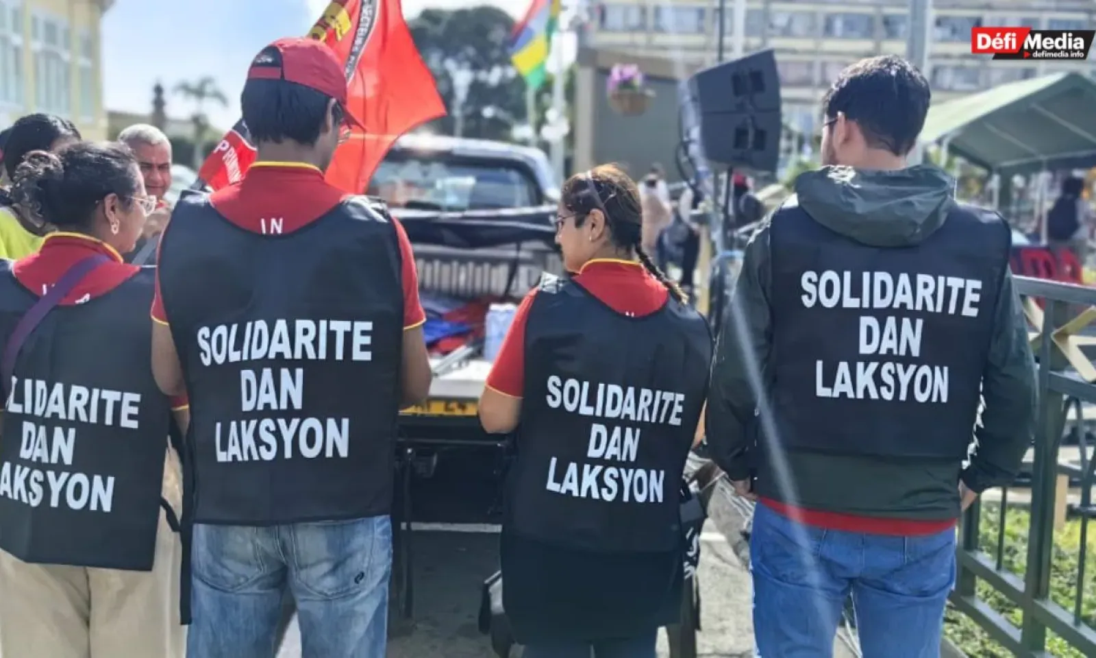 Rassemblement de La Plateforme Syndicale Commune, en ce samedi 5 juillet, au Plaza à Rose-Hill. Elle s’oppose fermement au relèvement de l’âge d’éligibilité à la pension de vieillesse, qui passerait de 60 à 65 ans.