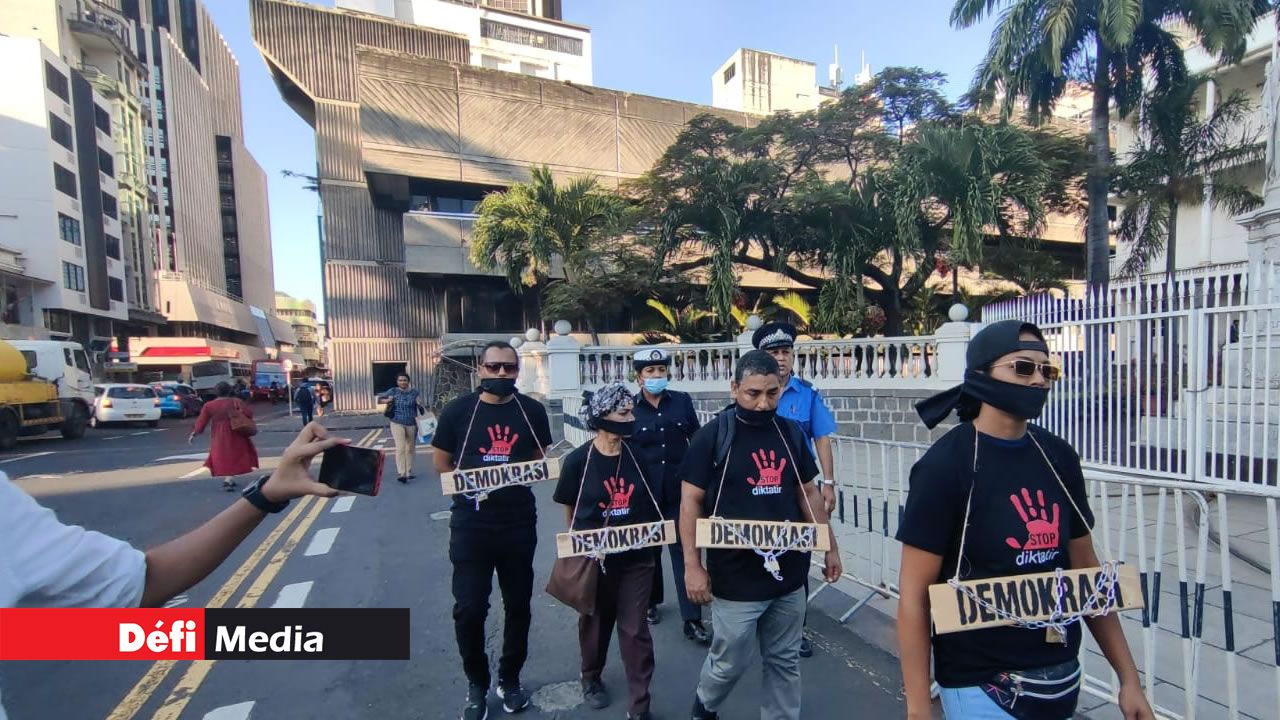 Des membres de Rezistans ek Alternativ (ReA) ont tenu une manifestation symbolique dans les rues de la capitale, près de l’Assemblée nationale, cet après-midi. À travers cette action, ils protestent contre les amendements qui seront apportés au Local Governement Act permettant les élections municipales jusqu’en juin 2025. Le projet de loi qui prévoit ces amendements est débattu en ce moment même à l’Assemblée nationale. Parmi les membres de ReA qui ont manifesté : Ashok Subron et Kugan Parapen.