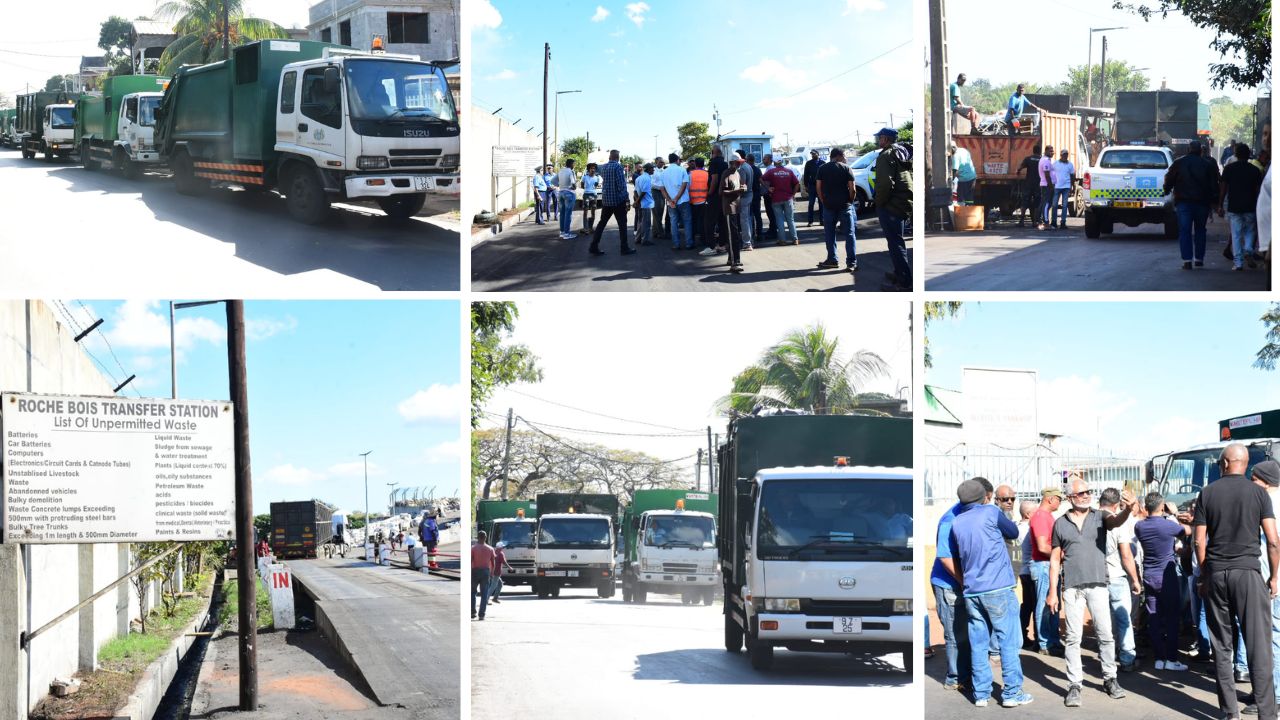 Sit-in des éboueurs de la municipalité de Port-Louis à Roche-Bois ce vendredi matin. Ils refusent de travailler, car ils disent avoir reçu des menaces hier.