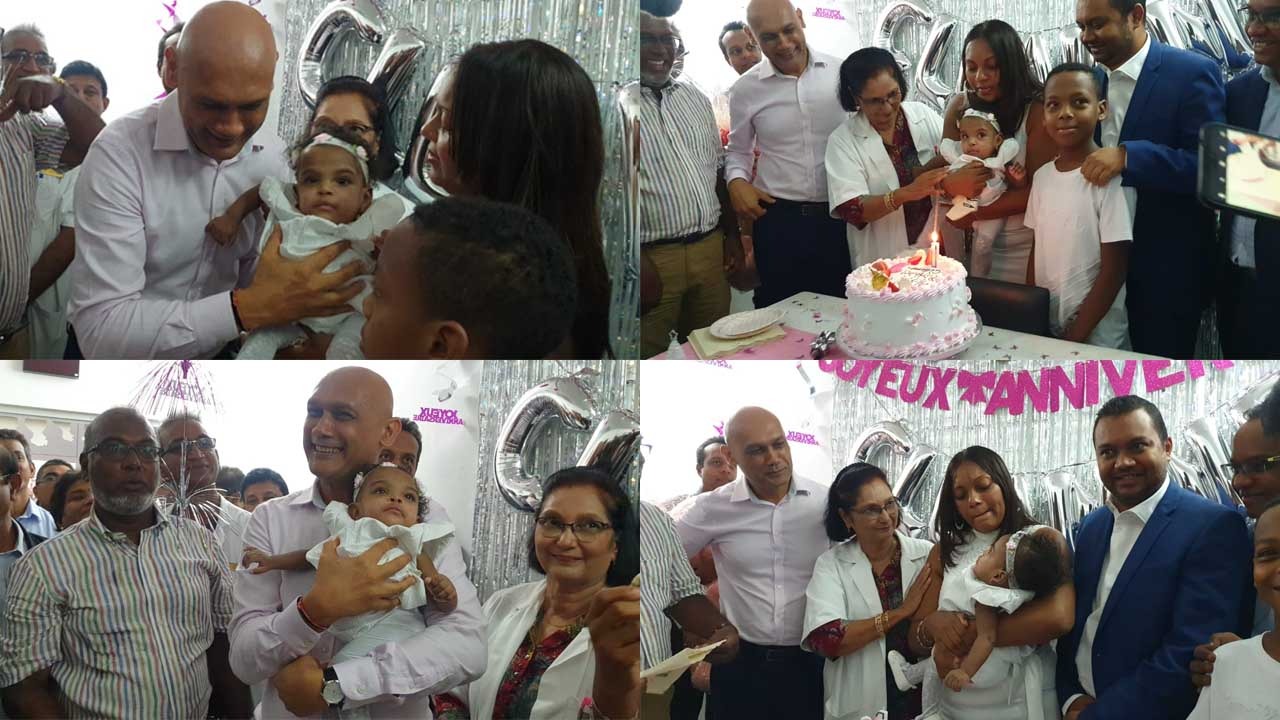 C’est entourée de sa mère, de son grand frère, des membres du personnel soignant du département néonatal Intensive Care Unit (NICU) de l’hôpital de Flacq, du ministre de la Santé, Kailesh Jagutpal, et du ministre de laTechnologie, de l'Innovation et de la Communication, Deepak Balgobin, que la petite Cléanne a soufflé sa première bougie en grande pompe ce samedi matin 4 janvier à l'hôpital de Flacq.