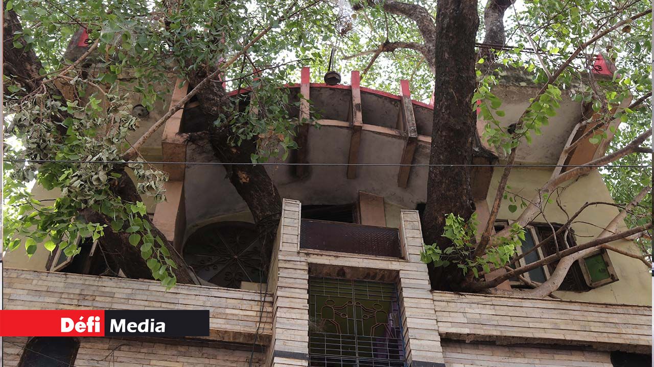 L'arbre centenaire est désormais le trait caractéristique de leur résidence de trois étages de la ville de Jabalpur, dans le centre de l'Inde. Ses branches et feuilles sortent par les fenêtres et le toit, son tronc traverse sols et plafonds.