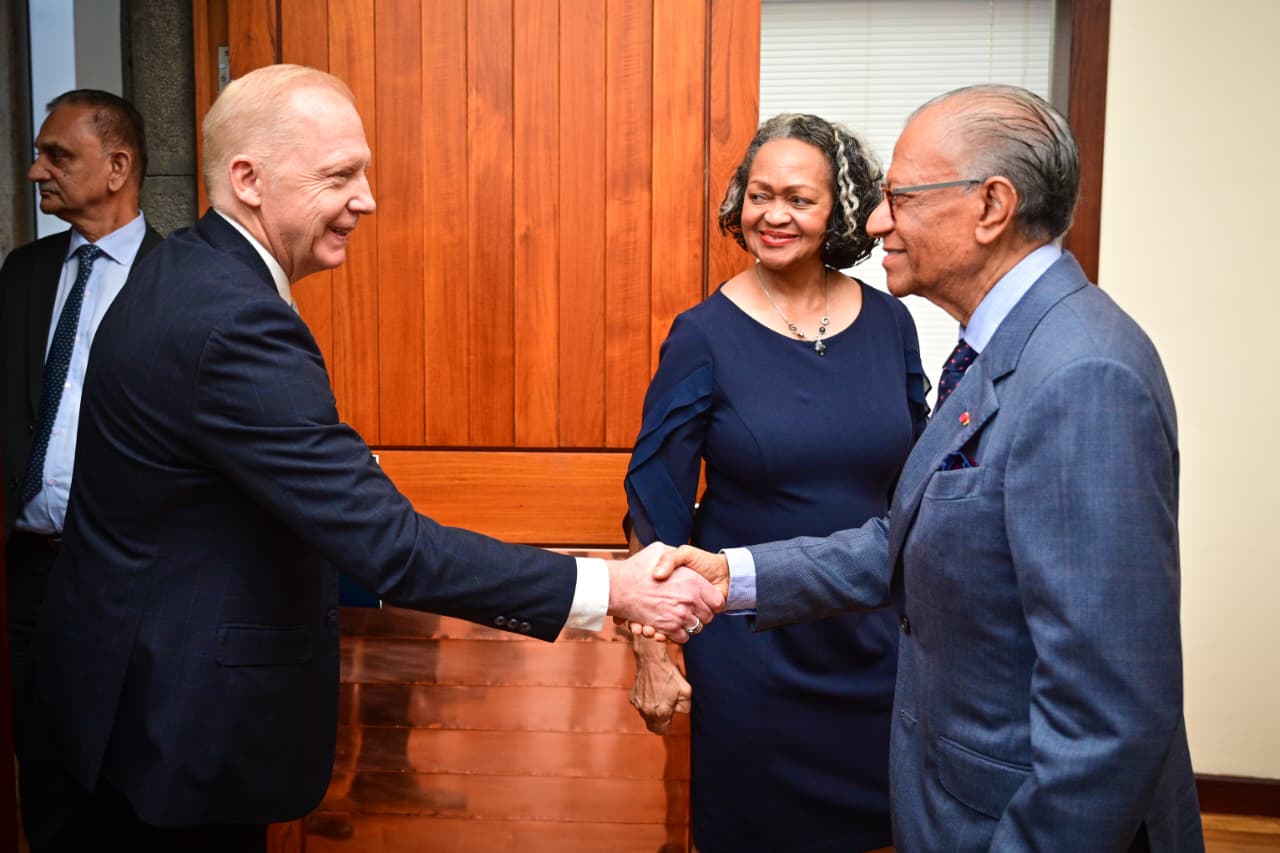 La présidente et CEO du « Corporate Council for Africa » (CCA), Florizelle Liser, a rencontré ce jeudi le Premier ministre, le Dr Navin Ramgoolam. Elle était accompagnée de Jean Raymond Boulle, Biouva Kabine et de l’ambassadeur Henry Jardine.