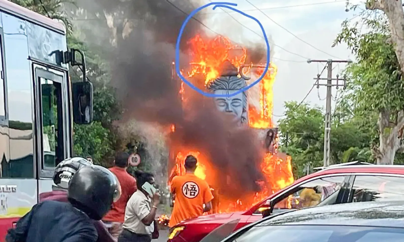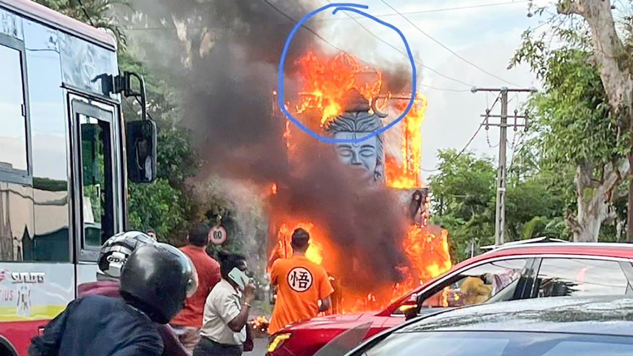 Le sommet du kanwar, érigé par le Trikal Sena Group, a heurté une ligne de distribution du Central Electricity Board (CEB). La structure, confectionnée par des jeunes de Triolet, était constituée de matériaux tels que du tissu et du polystyrène. Elle n’a pas résisté à la décharge électrique qu’elle a reçue.
