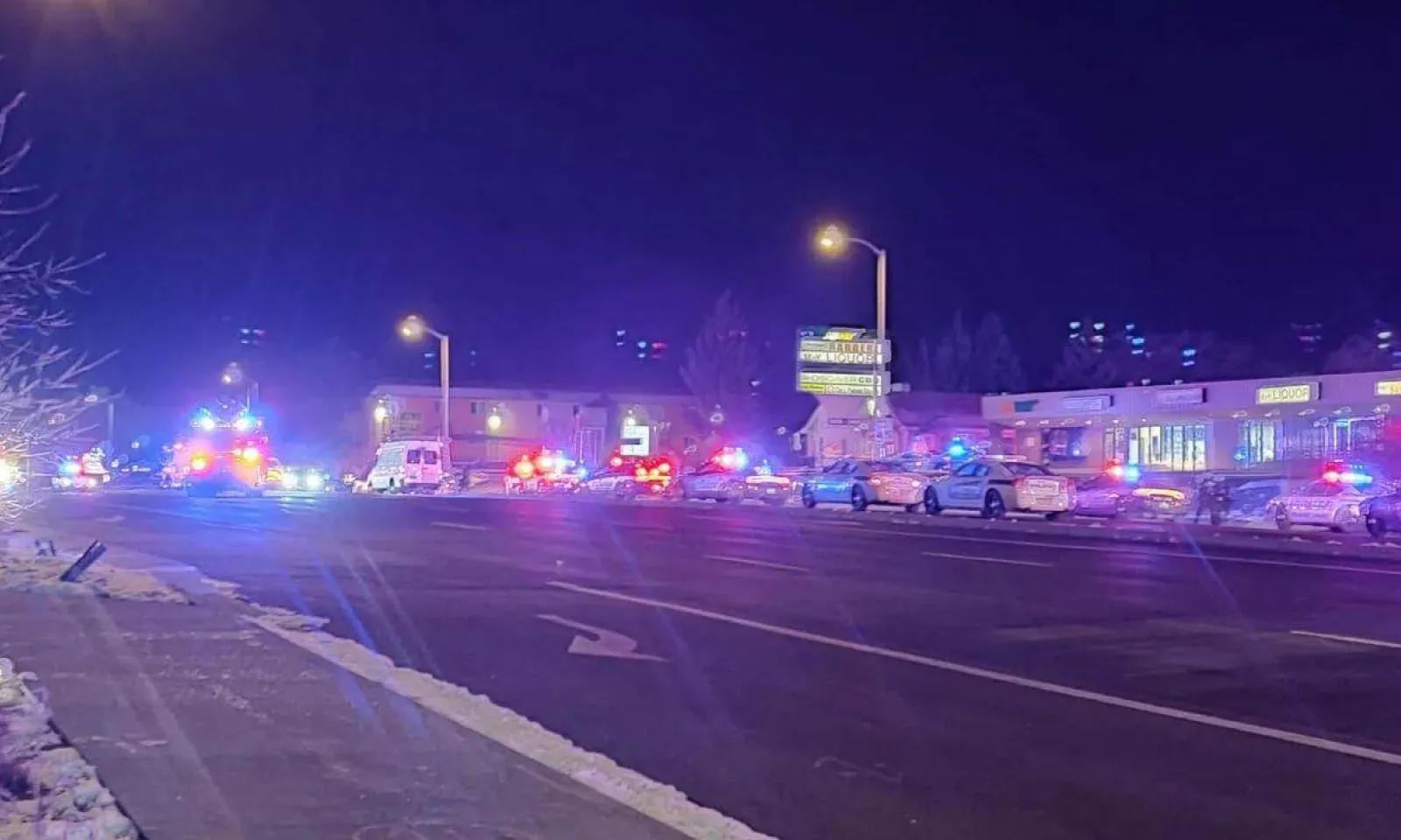 Au moins cinq personnes ont été tuées et 18 autres blessées juste avant minuit samedi lors d'une fusillade dans une discothèque LGBTQ à Colorado Springs dans le Colorado aux Etats-Unis (centre), a annoncé dimanche la police.