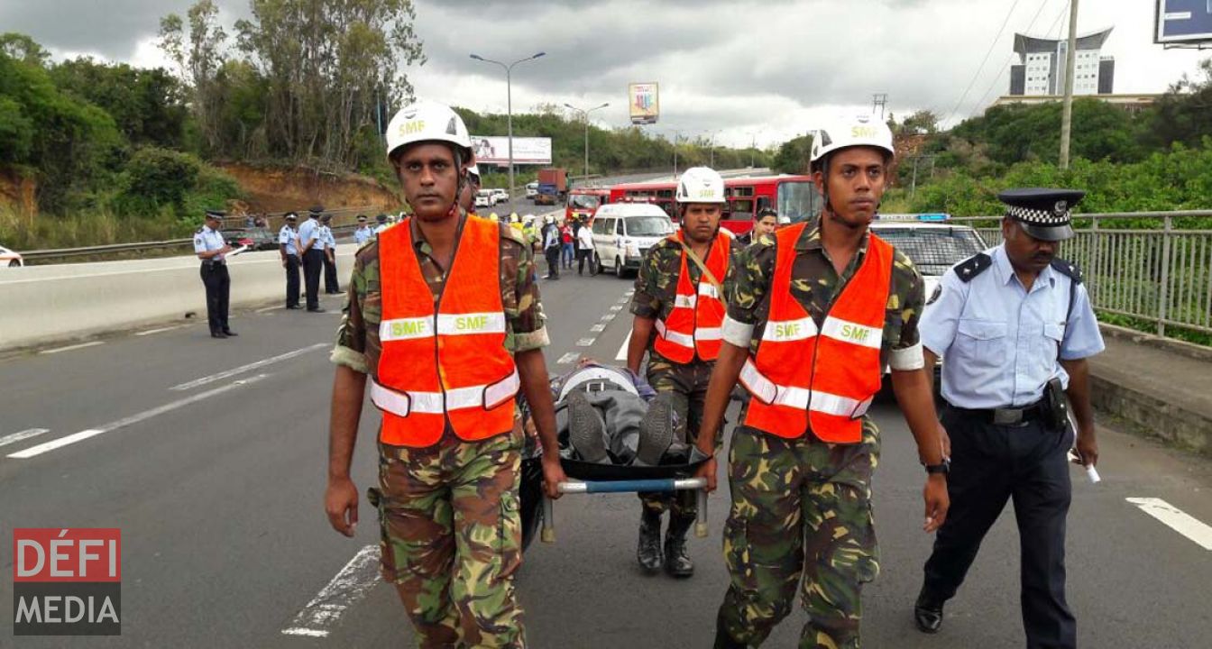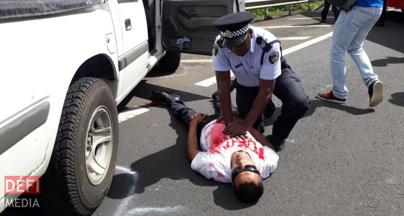 « Ayo ayo », soupire un homme couvert de sang. Pas de panique, il n'a pas été victime d'un accident grave. En réalité, il participe à un exercice de simulation organisé par la police à hauteur du pont Mattur, à Réduit, ce jeudi 31 août.