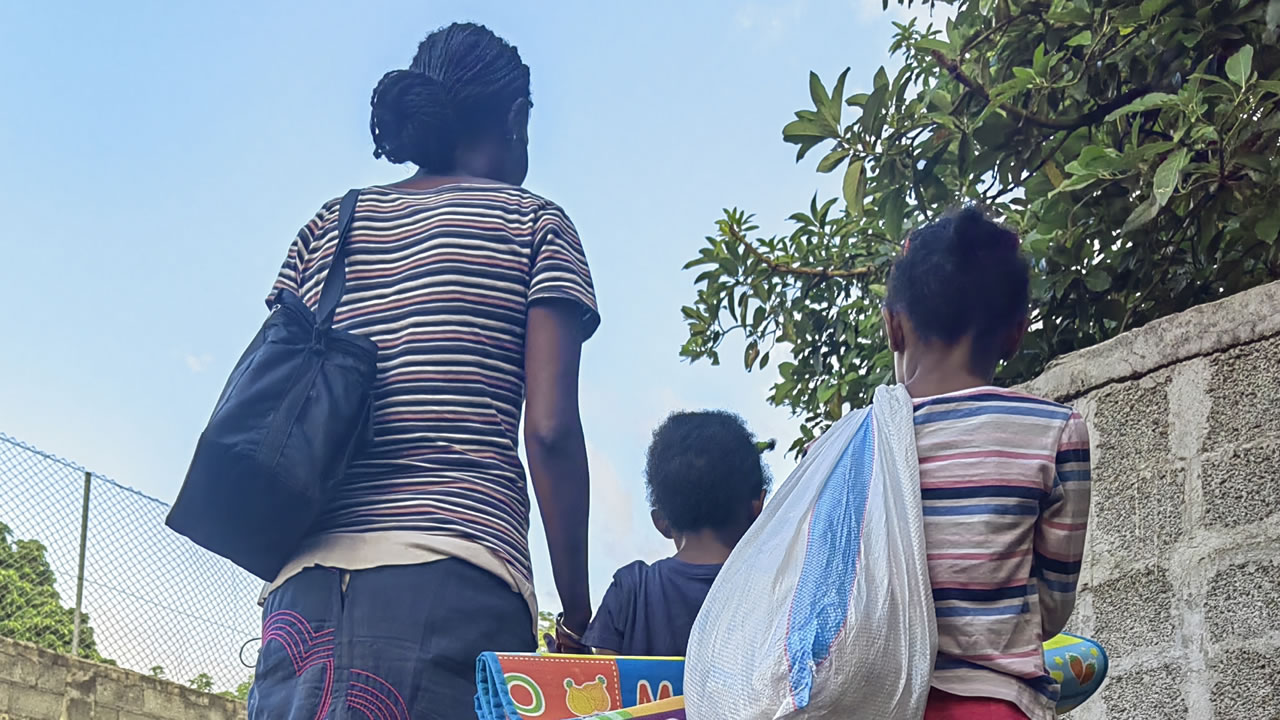 « Tous les matins, j’allais préparer les filles pour l’école dans la cour. Elles étaient très contentes de ne pas manquer l’école et moi j’étais rassurée de ne pas avoir à les garder avec moi dans la rue. À l’école, heureusement, elles ont à manger, mais on nous demandait de mettre quelque chose dans le sac des enfants, car les repas étaient livrés très tard. Alor ena fwa mo ti kapav met enn lamwatie dipin sek dan zot sak », avoue Eny. Pourtant, cette dernière ne veut pas baisser les bras et tente de trouver un travail, mais son apparence joue contre elle. « Me dimounn guet mo zar zot per, zot gayn degout, zot pa rod donn mwa enn travay ».