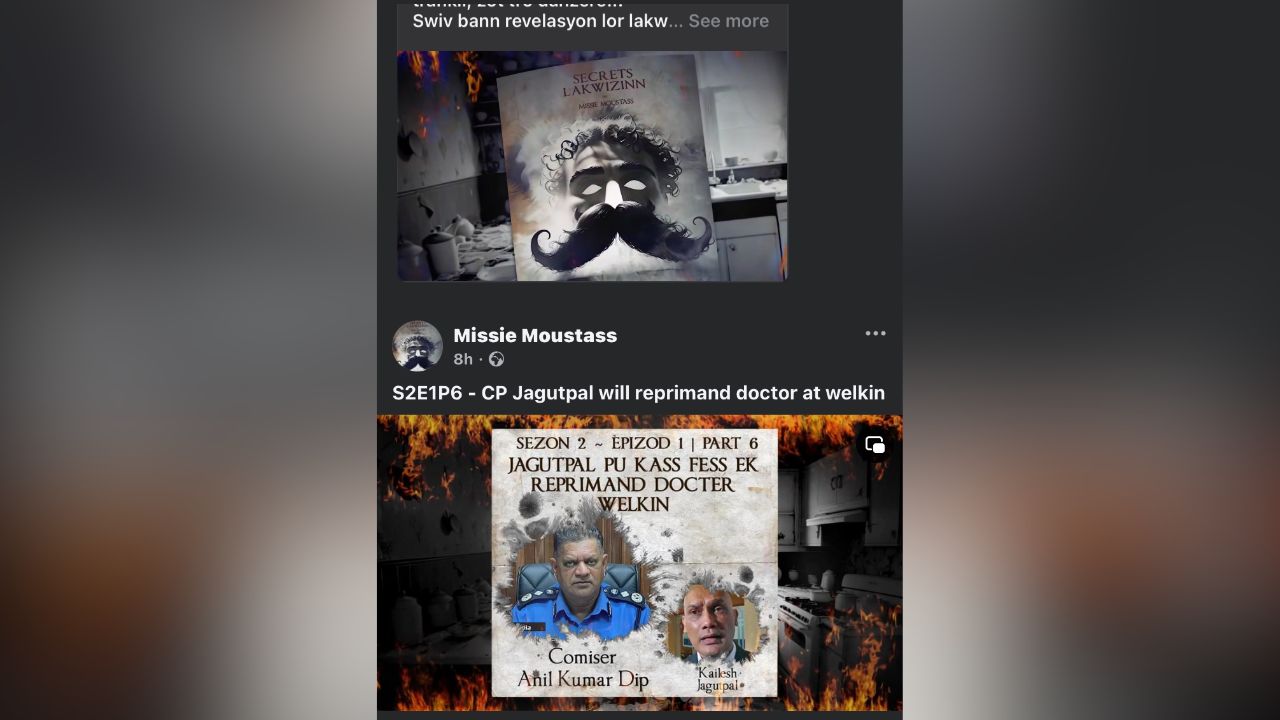 Mercredi, un policier a porté plainte au Central Criminal Investigation Department (CCID). Il a dénoncé des propos publiés par « Missier Moustass », partagés par la suite sur les réseaux sociaux. Une photo de son épouse, aussi policière, est présentée comme étant celle de la femme avec laquelle le Commissaire de police Anil Kumar Dip aurait eu une conversation dite osée : « Get mwa live. Amen gel to vinn get mwa demin », dans la saison 2, épisode 8. Le Central Criminal Investigation Department (CCID) aurait ouvert une enquête et d’autres unités de police seraient également sur cette affaire. Aux Casernes centrales, c’est motus et bouche cousue sur cette enquête.