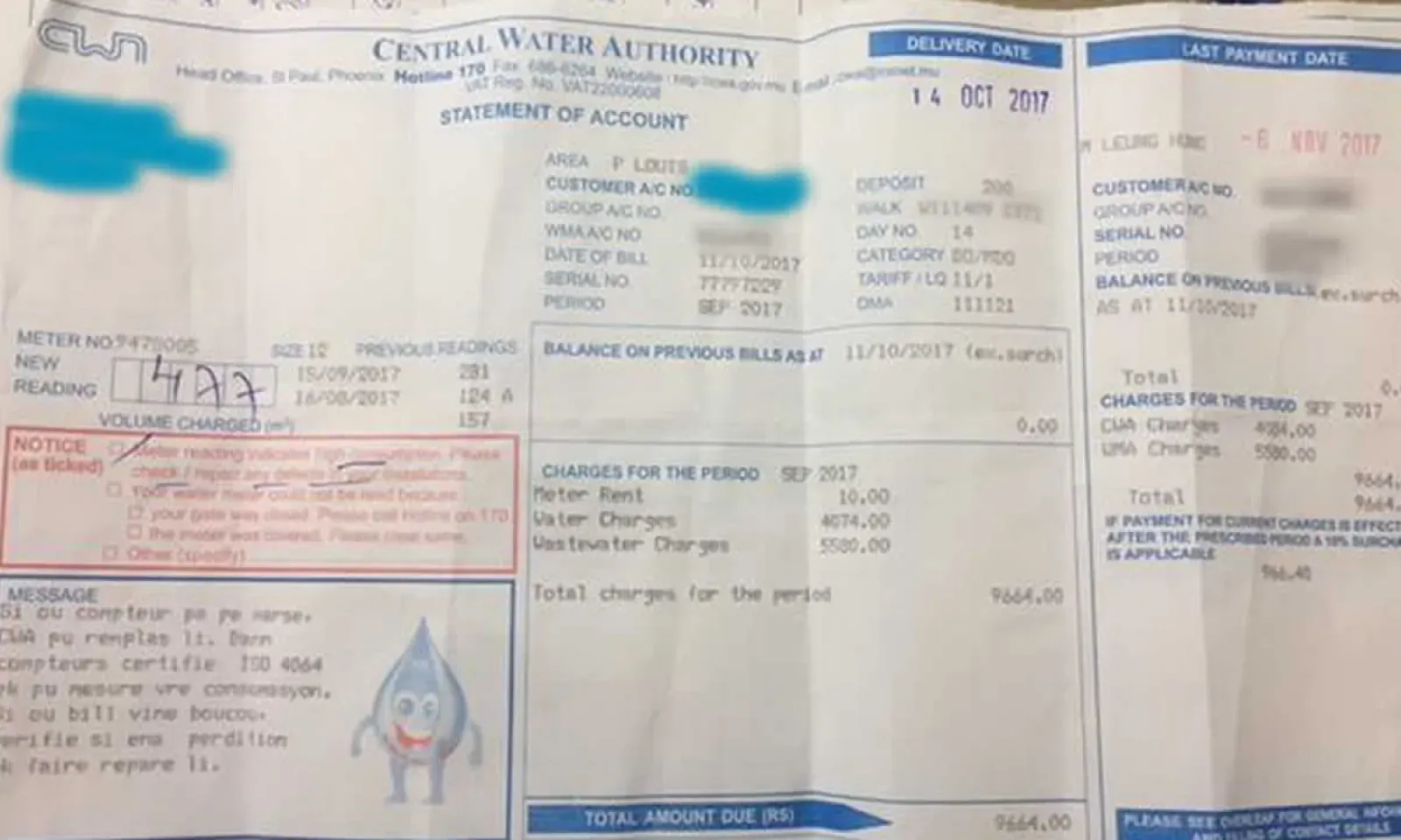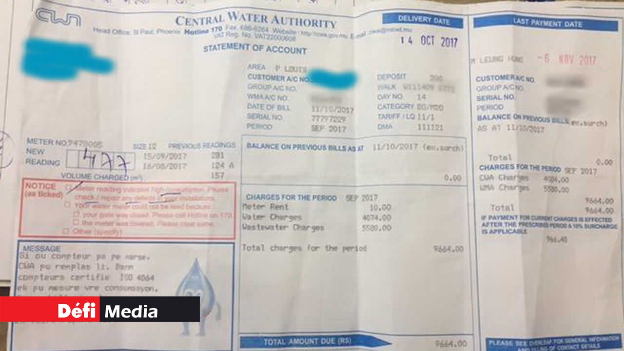 Laval, un retraité de la capitale, a sollicité la rédaction d’Xplik ou K lorsqu’il a reçu sa facture de la Central Water Authority (CWA) pour le mois de septembre.