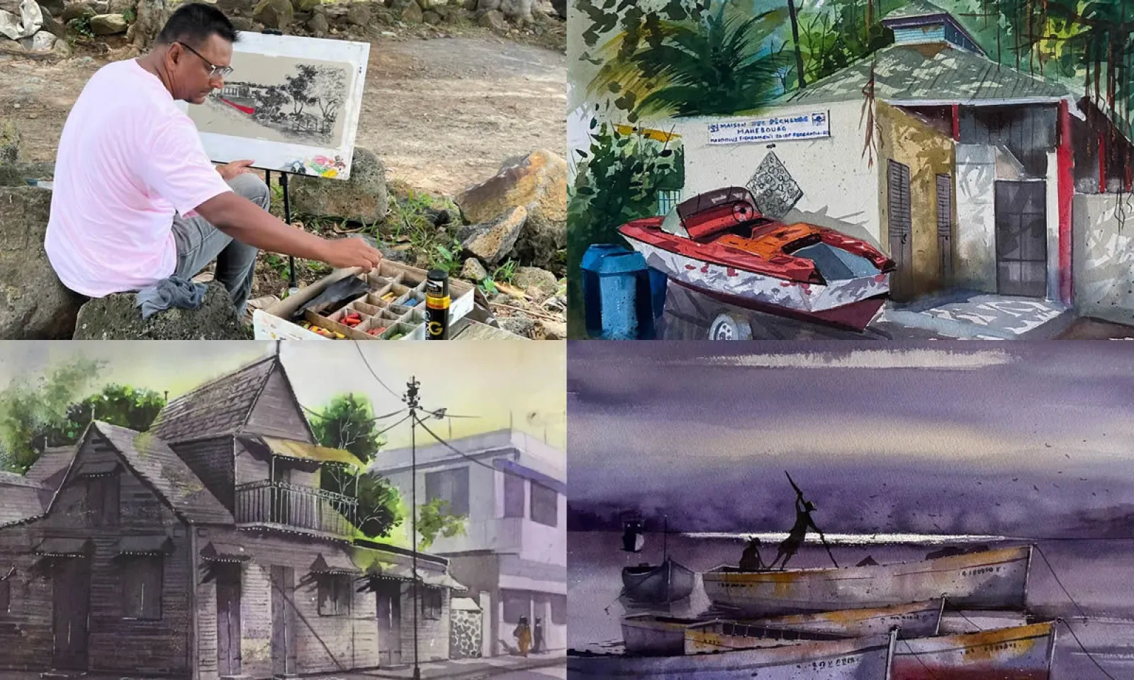 La technique de l’aquarelle, il la maîtrise depuis ses années de collège. De Port-Louis, sa ville natale aux côtes mauriciennes, l’artiste peintre ne se lasse pas de ses couleurs et de ses pinceaux. Rencontre.