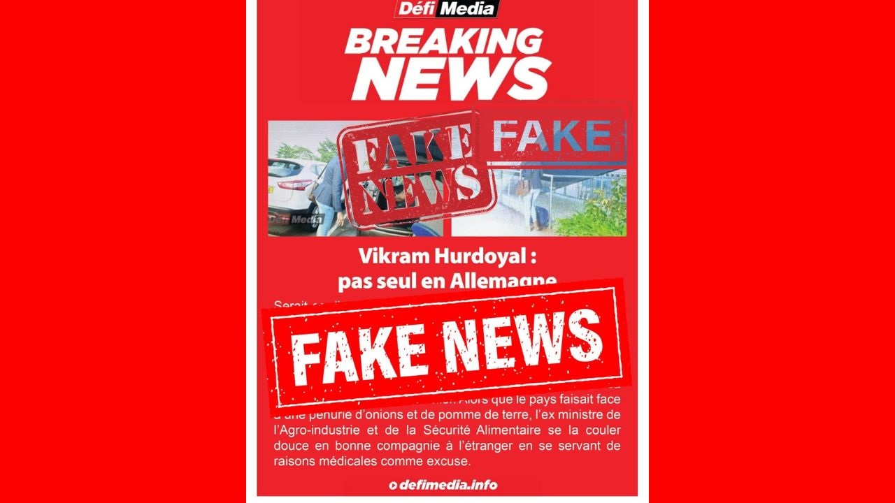 Il a été porté à notre connaissance, ce jeudi 15 février, qu'une « fake news » portant le titre « Vikram Hurdoyal : pas seul en Allemagne » avec le logo du Défi Media circule sur les réseaux sociaux.