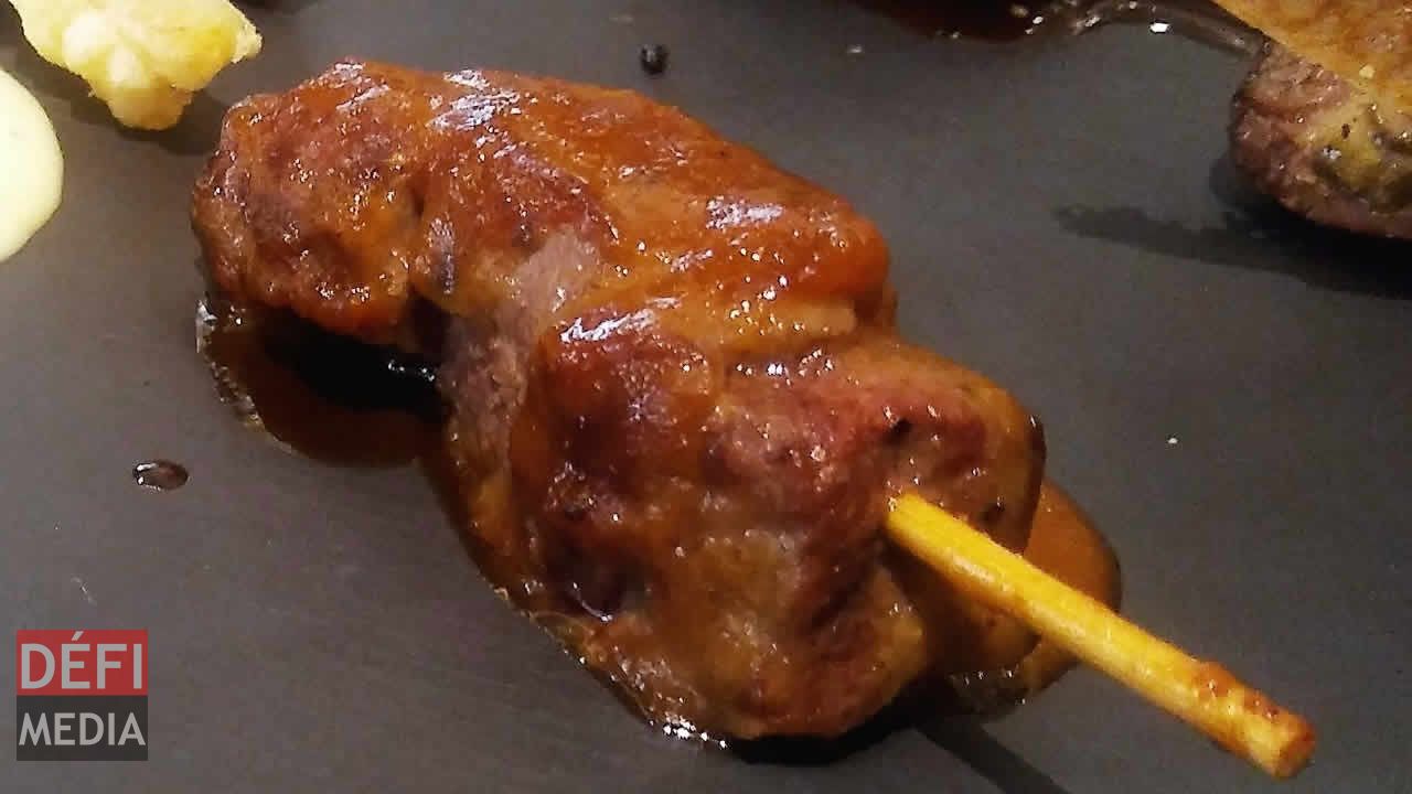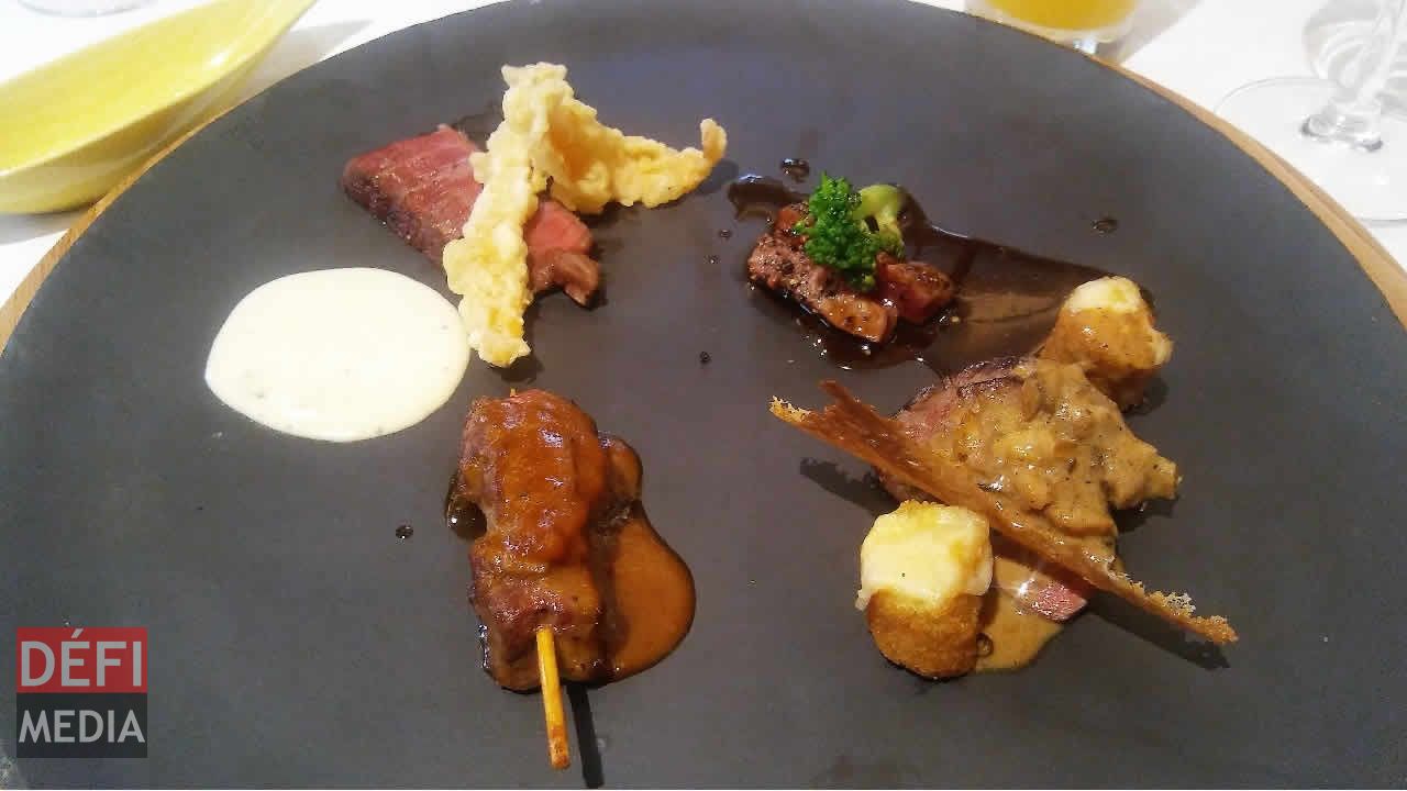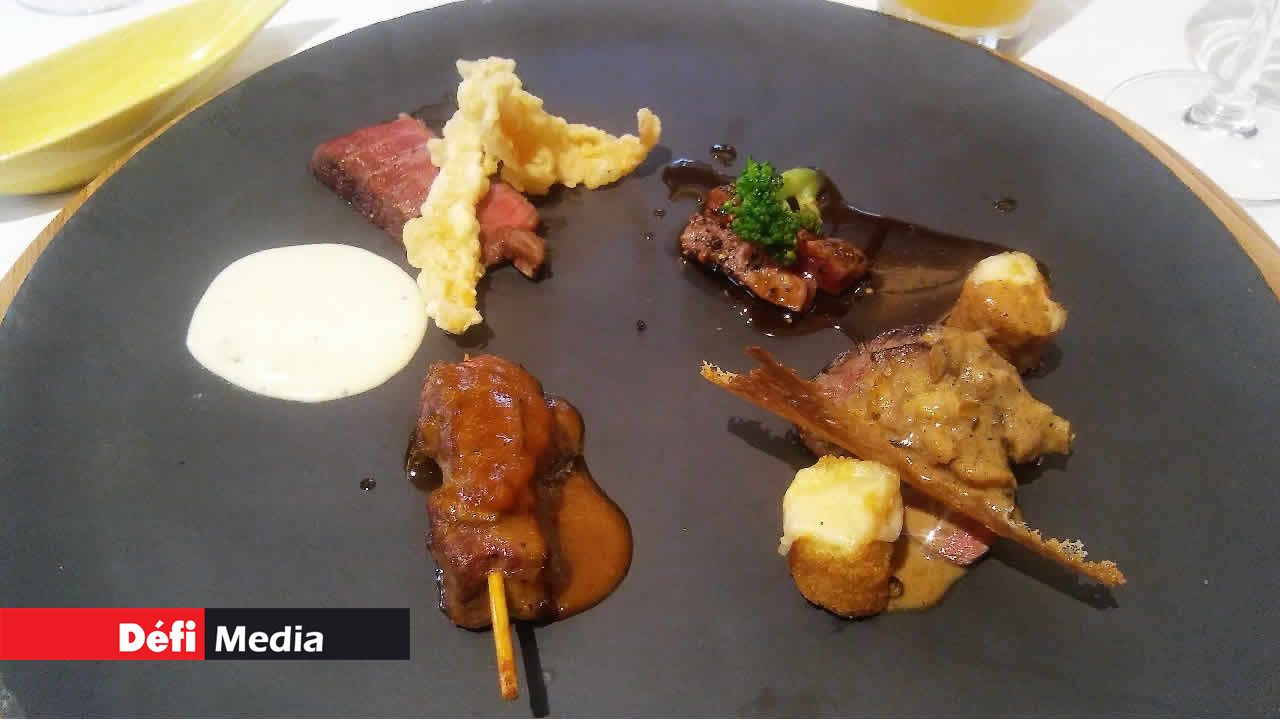 Pour le plat de résistance, le chef sort le grand jeu. Vous aurez le choix, côté européen, entre une entrecôte grillée et un filet. Côté japonais, le chef propose un tataki de bœuf pané aux graines de sésames, carottes et radis en tempura, jus de cuisson au gingembre et le kushi yaki de bœuf en brochette, sauce teriyaki et salade de wakamé.