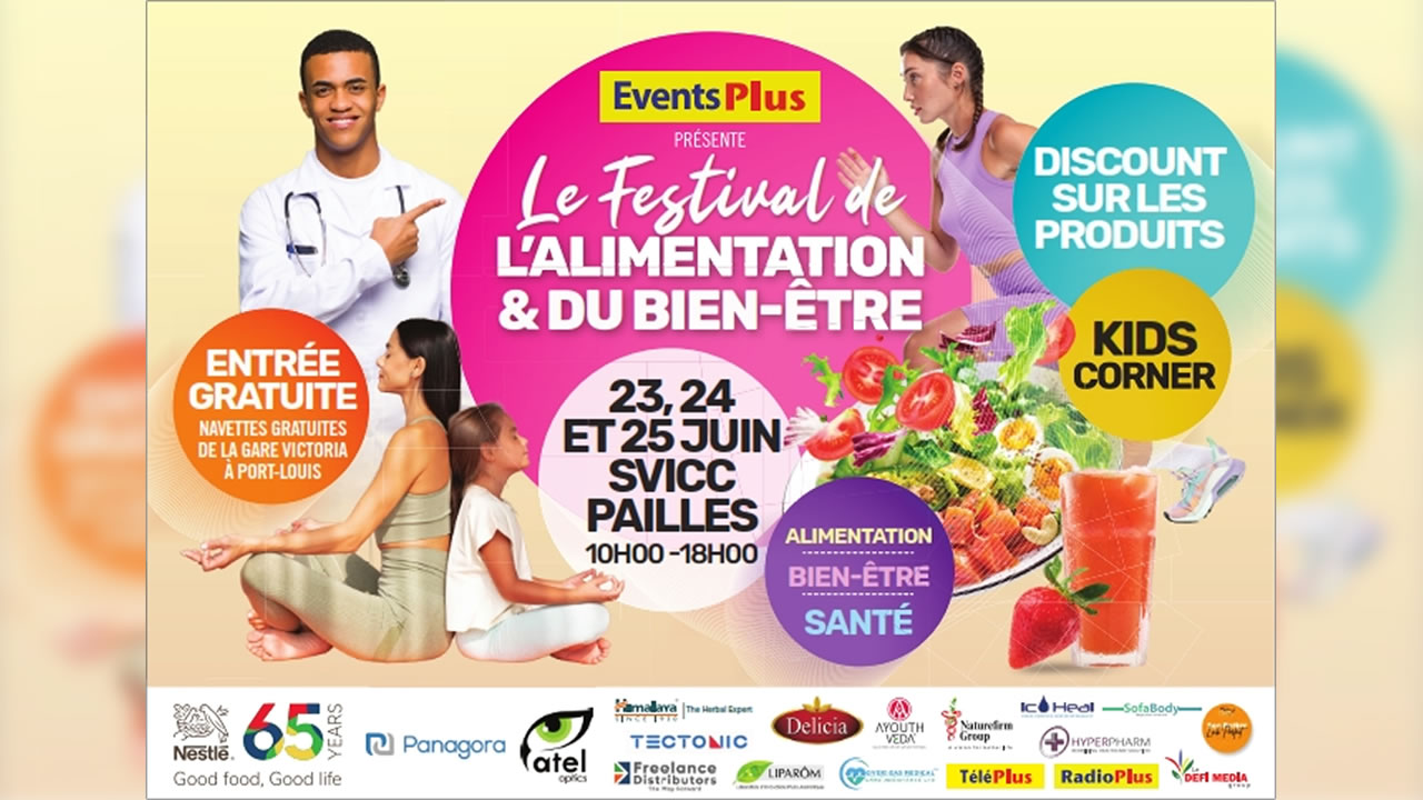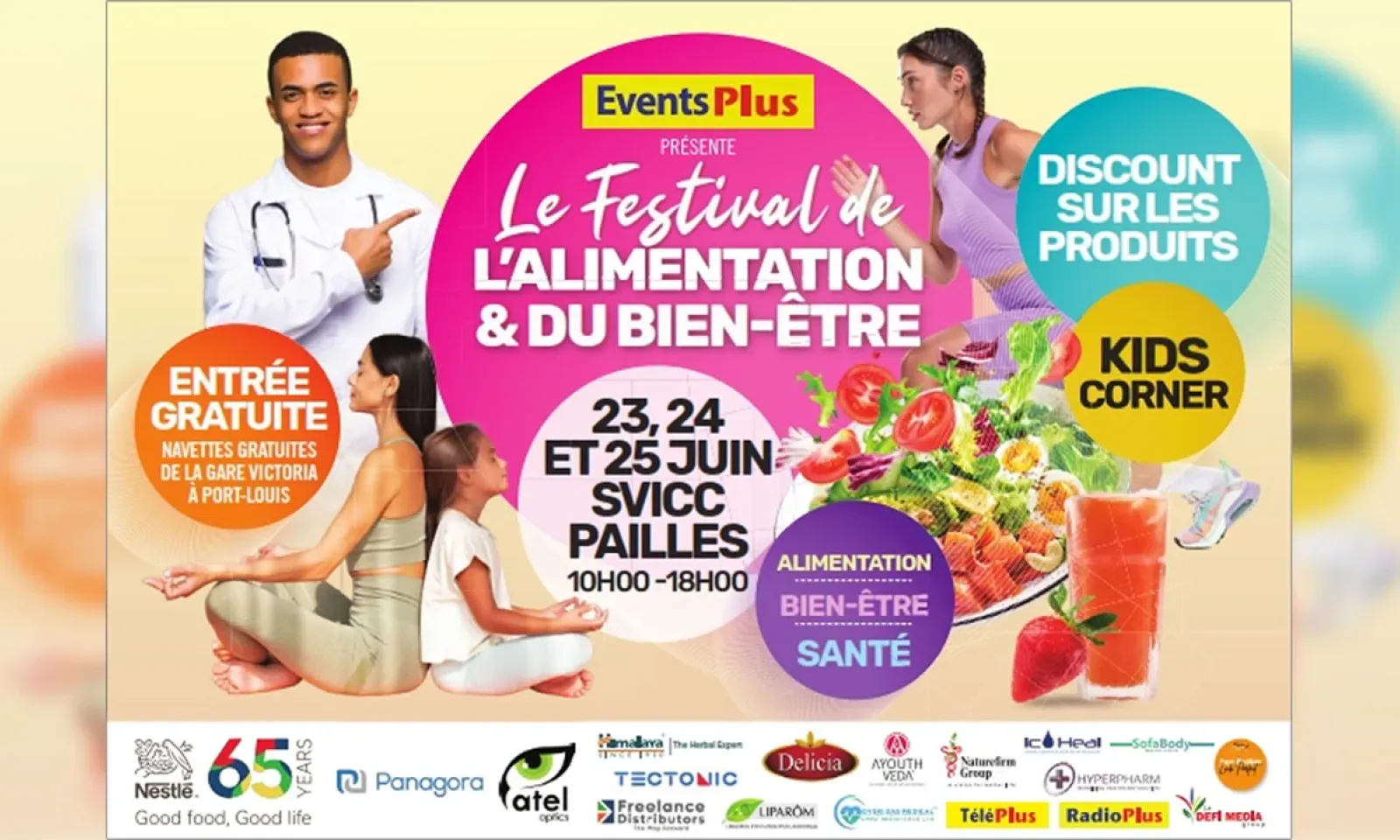 Le compte à rebours a commencé. Le Festival de l'Alimentation et du Bien-être ouvrira ses portes du 23 au 25 juin au Swami Vivekananda International Convention Centre (SVICC), à Pailles. Cet événement, présenté par Events Plus en collaboration avec Radio Plus et Le Défi Media Group, mettra en avant l'alimentation, le bien-être et la santé. L'entrée est gratuite.