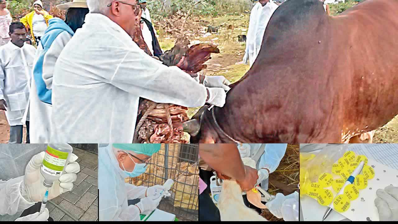 Pas moins de 20,000 doses du vaccin ont été obtenues du Botswana Vaccine Institute, soit 10,000 pour Maurice et les 10,000 autres pour Rodrigues. Dans un premier temps, ce sont principalement les cheptels bovins et caprins, les plus affectés par cette épizootie, qui sont ciblés. Plusieurs unités du département de vétérinaire du ministère de l’Agro-industrie sillonnent l’île pour administrer les doses du vaccin en commençant par les fermes les plus éloignées des foyers d’infection. L’exercice a débuté à 11h30. Trois véhicules du département de vétérinaire, avec à la tête le Dr Rajah Beeharry, quittent la Veterinary Division d’Abercrombie pour Bois Marchand.