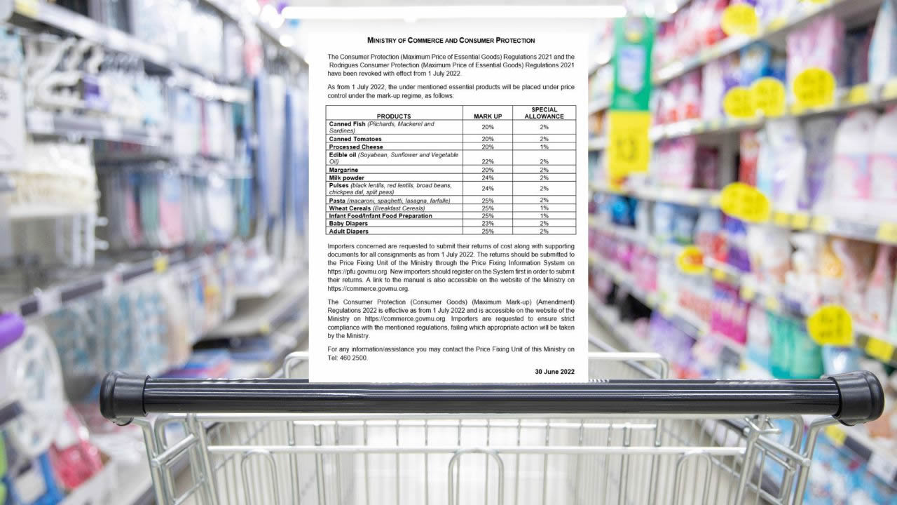 À partir du 1er juillet 2022, des produits essentiels mentionnés seront placés sous contrôle des prix sous avec un maximum mark-up de 20 % à 25 %. Décision qui intervient après la fin des subsides sur des commodités de base ce jeudi 30 juin. Plus de détails dans le communiqué émis ce soir par le ministère du Commerce :