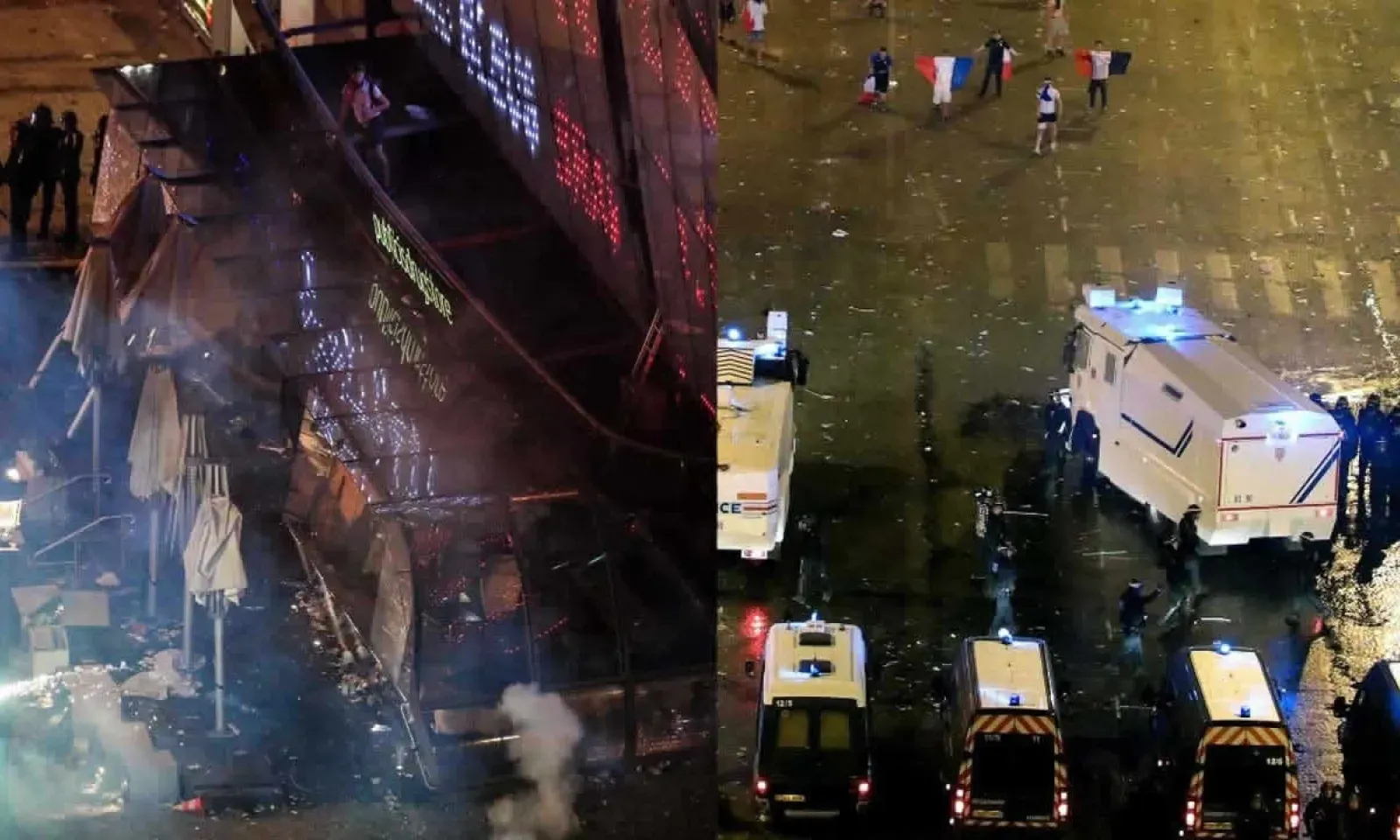 Des incidents sporadiques ont eu lieu dans la soirée sur les Champs-Elysées, où lundi les Bleus doivent défiler lundi en fin de journée (vers 15H00 GMT) pour célébrer leur victoire.
