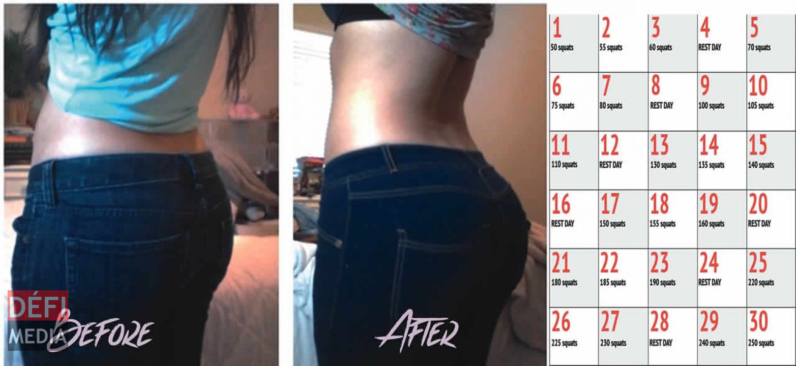 [[{"type":"media","view_mode":"media_large","fid":"16042","attributes":{"class":"media-image aligncenter size-full wp-image-27110","typeof":"foaf:Image","style":"","width":"1280","height":"589","alt":"30 Days Squat Challenge"}}]] En un clic, il est possible de trouver des exercices à faire à la maison pour se tonifier. Le plus populaire sur Instagram reste le 30 Days Squat Challenge. Le premier jour, on fait 30 squats, 40 le deuxième et ensuite 10 de plus chaque jour. À la fin de ce défi, les participants devront faire jusqu’à 250 squats. Le repos est aussi inclus, car il est possible de récupérer après chaque cinq jours. Au final, ce challenge permet d’avoir de belles fesses, bien galbées.Abs Challenge