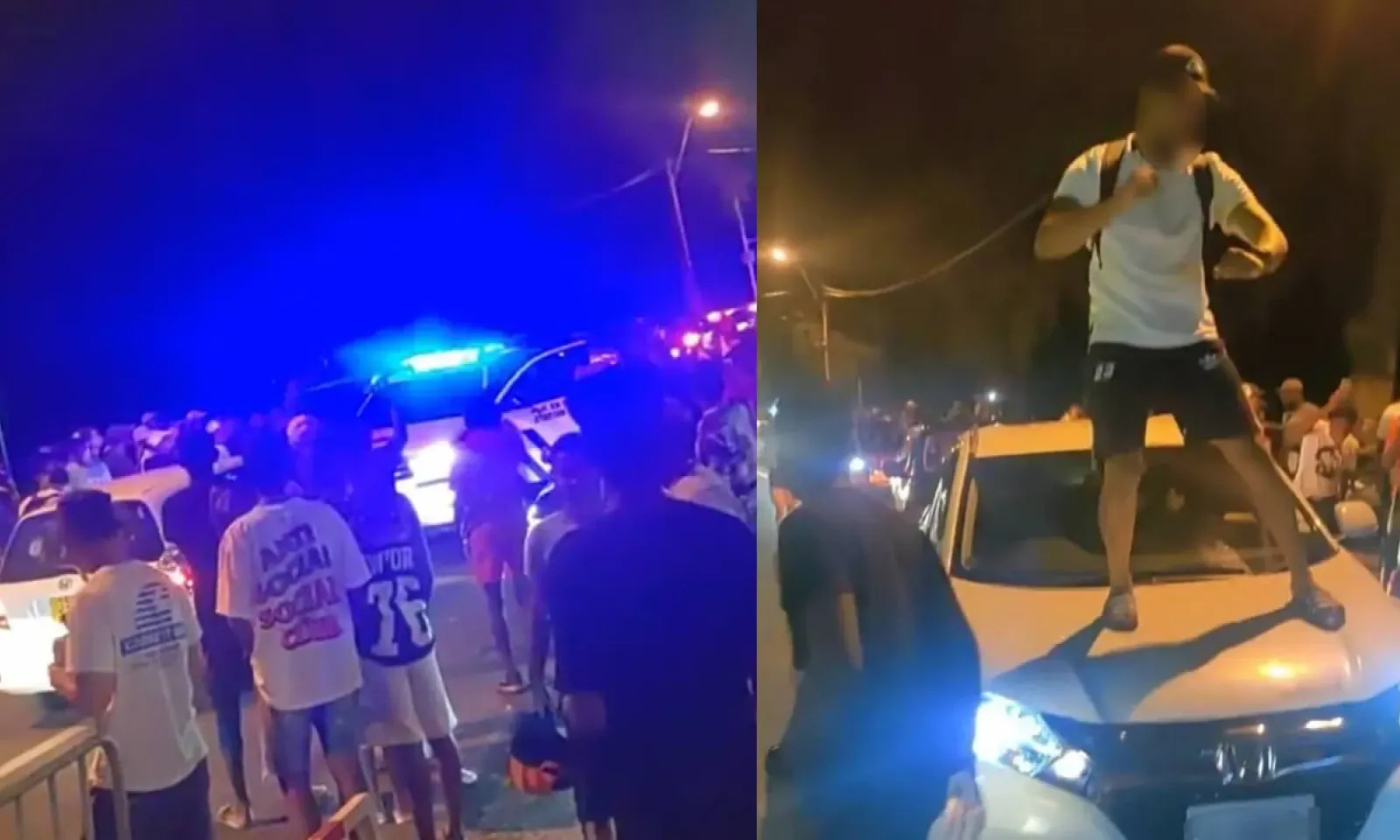 Des jeunes fêtards, hyper excités, transforment la route en piste de danse. Garçons et filles sont amassés et dansent sur des tubes qui sont en vogue en ce moment, dont Polico Crapo, du groupe Armada 666. Un morceau pourtant interdit, car offensant la police.